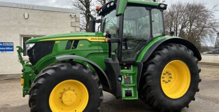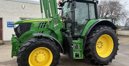 2024 JOHN DEERE 6155M WITH 2470HRS C/W JD 643M FRONT LOADER. TRACTOR HAS A 40KPH AUTOQUAD GEARBOX, AIR BRAKES, 3...