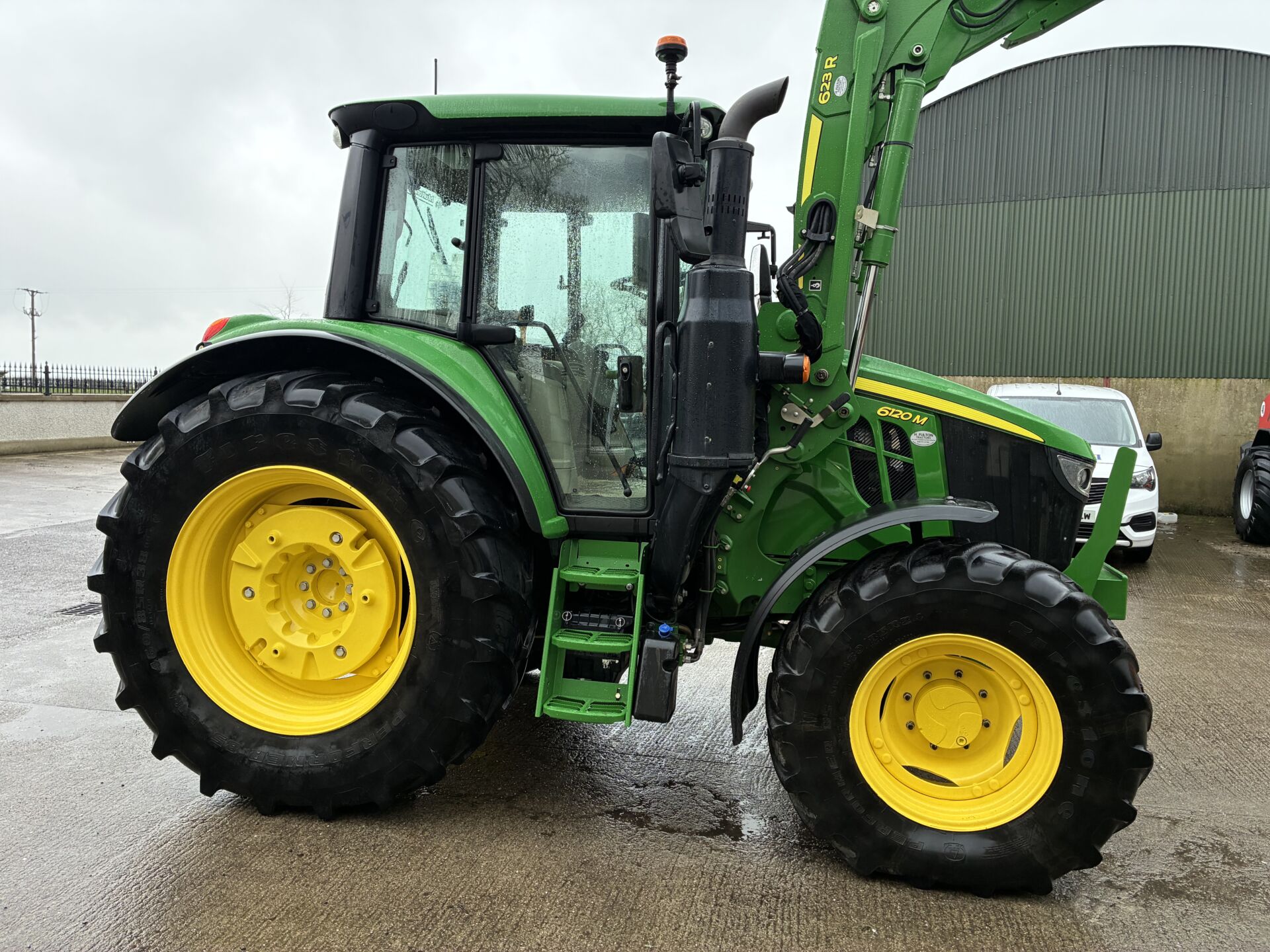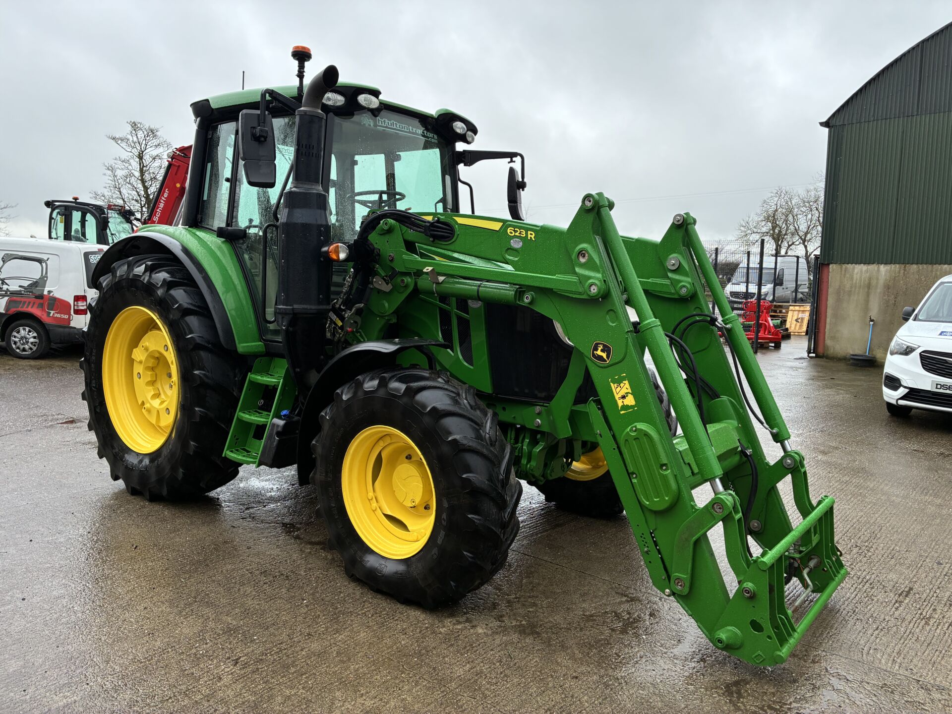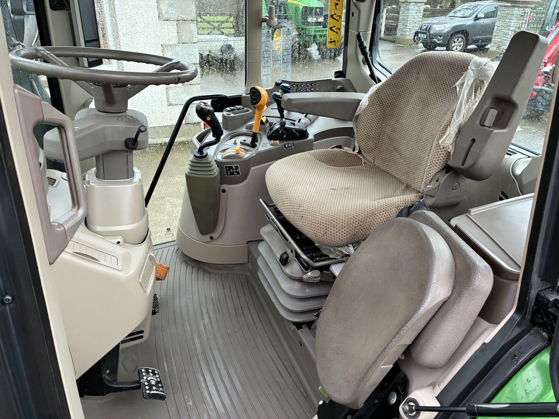 2022 JOHN DEERE 6120M WITH 3400 HOURS. C/W FACTORY FITTED JOHN DEERE 623R LOADER. TRACTOR HAS A 40KPH AUTO-QUAD GEARBOX WITH THE FORWARD-REVERSE GEAR-CHANGE FUNCTION ALSO ON LOADER JOYSTICK, FRONT TLS SUSPENSION, 2 MANUAL SPOOLS WITH THE 3RD SPOOL ON BUTTON TO OPERATE TELESCOPIC HITCH, HIGH FLOW HYDRAULIC PUMP, REAR WHEEL WEIGHTS, BIG MIRRORS, AIR SEAT, AIR CON, PASSENGER SEAT ETC…