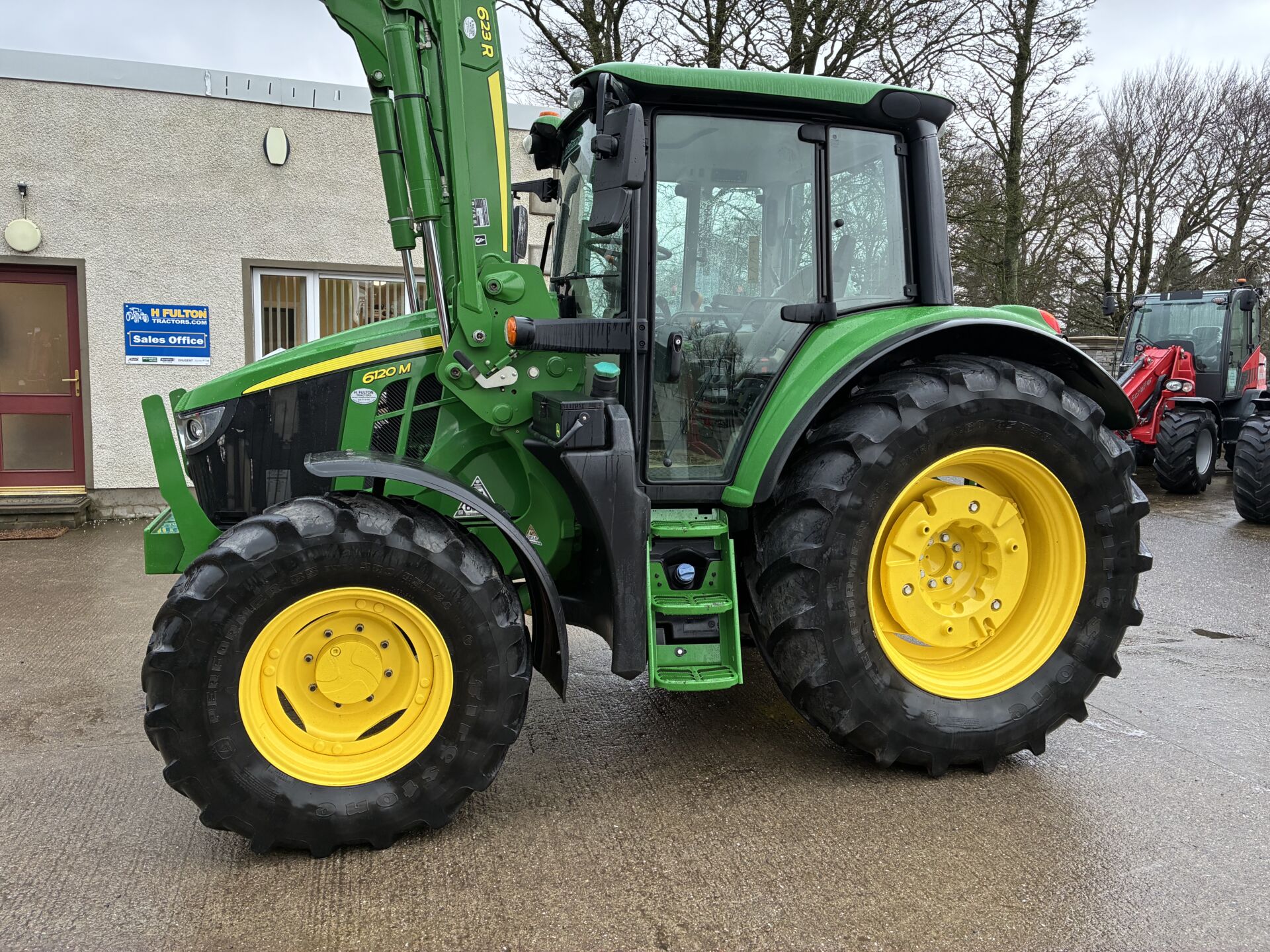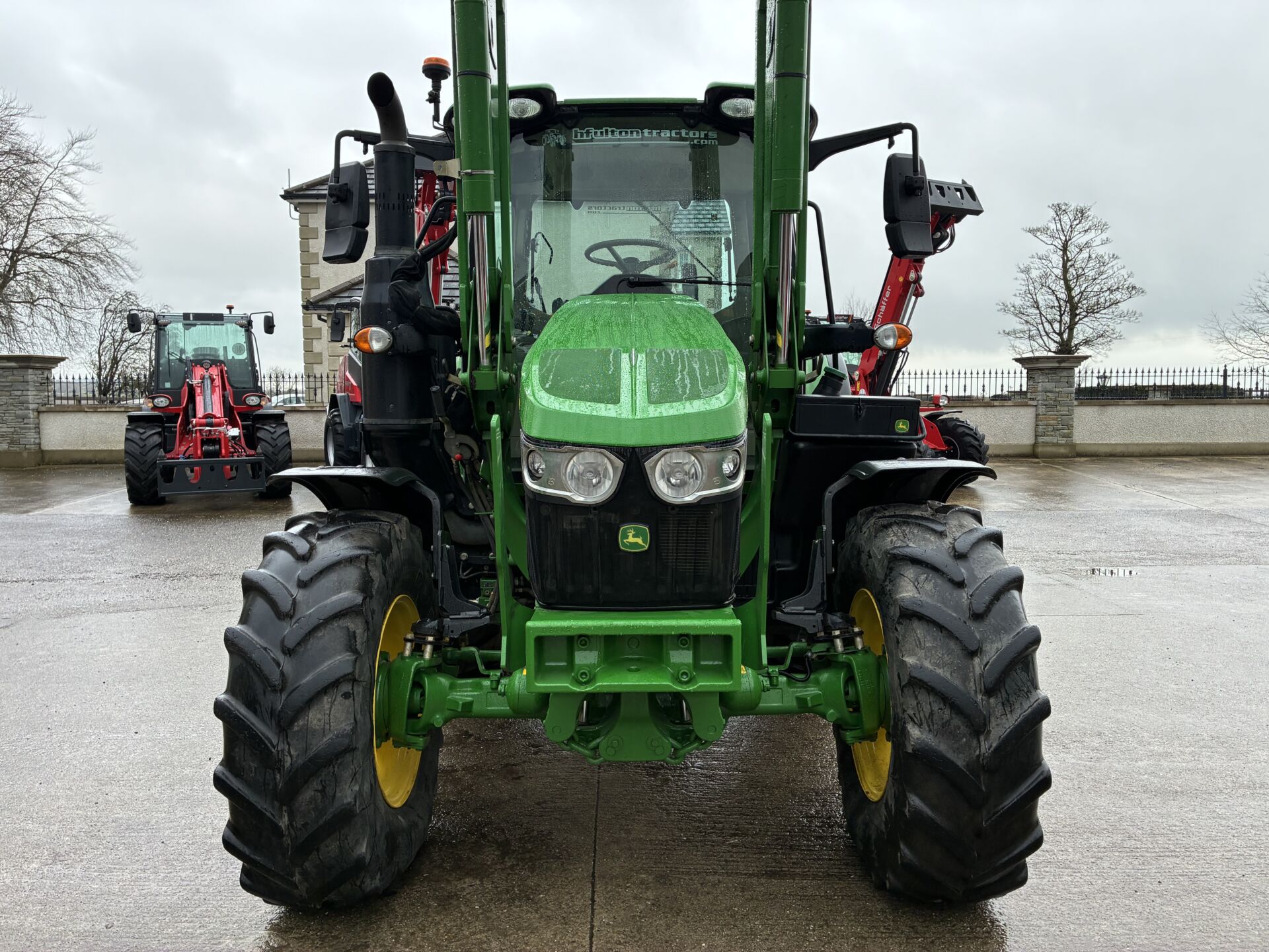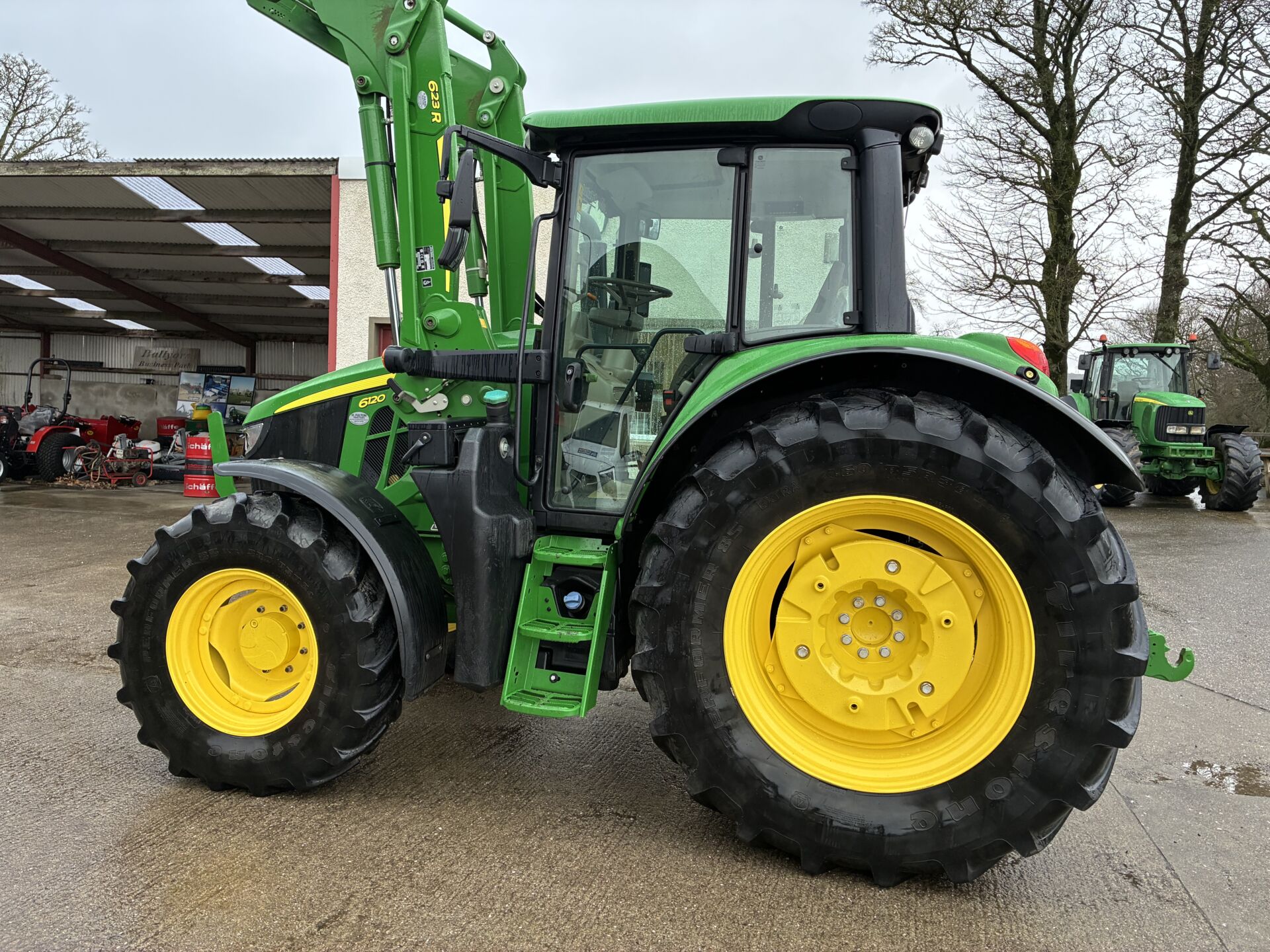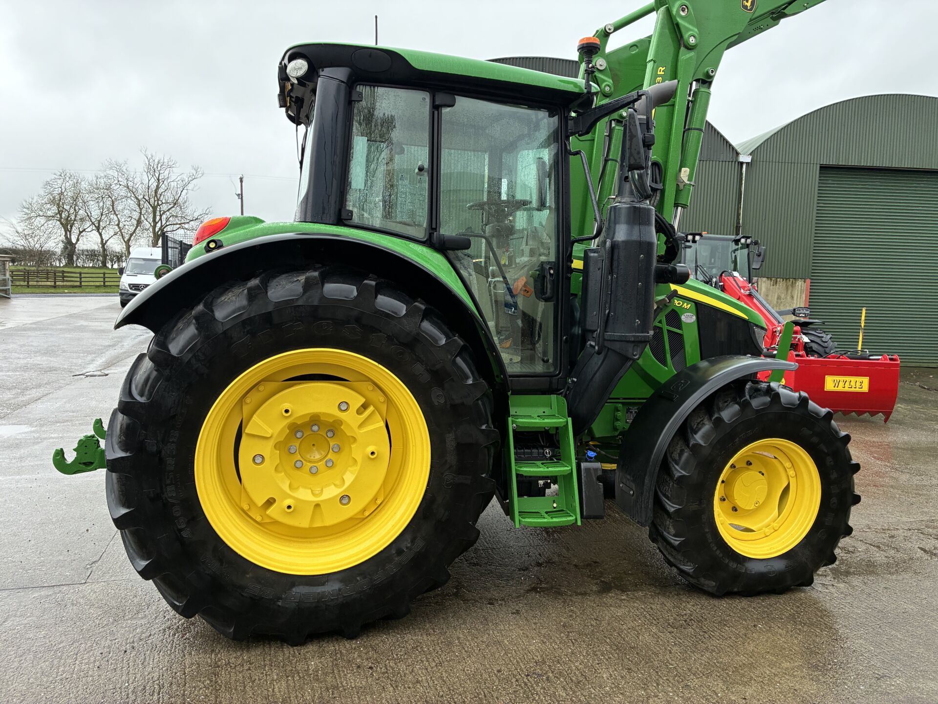 2022 JOHN DEERE 6120M WITH 3400 HOURS. C/W FACTORY FITTED JOHN DEERE 623R LOADER. TRACTOR HAS A 40KPH AUTO-QUAD GEARBOX WITH THE FORWARD-REVERSE GEAR-CHANGE FUNCTION ALSO ON LOADER JOYSTICK, FRONT TLS SUSPENSION, 2 MANUAL SPOOLS WITH THE 3RD SPOOL ON BUTTON TO OPERATE TELESCOPIC HITCH, HIGH FLOW HYDRAULIC PUMP, REAR WHEEL WEIGHTS, BIG MIRRORS, AIR SEAT, AIR CON, PASSENGER SEAT ETC…
