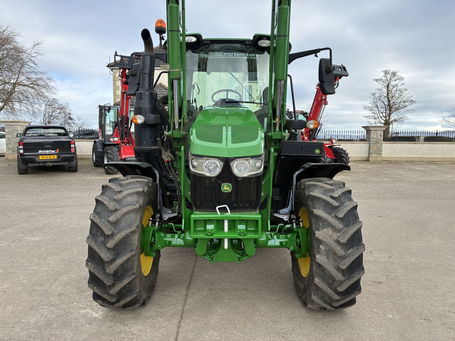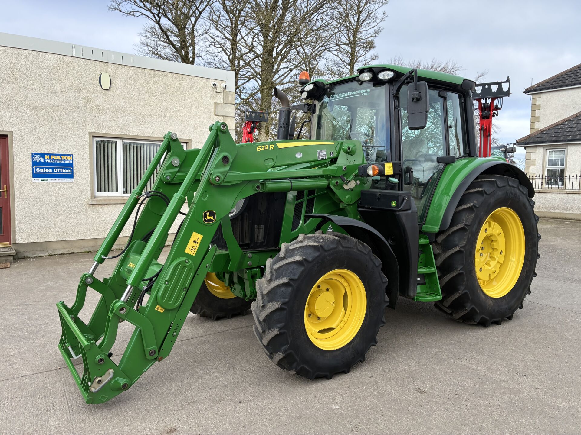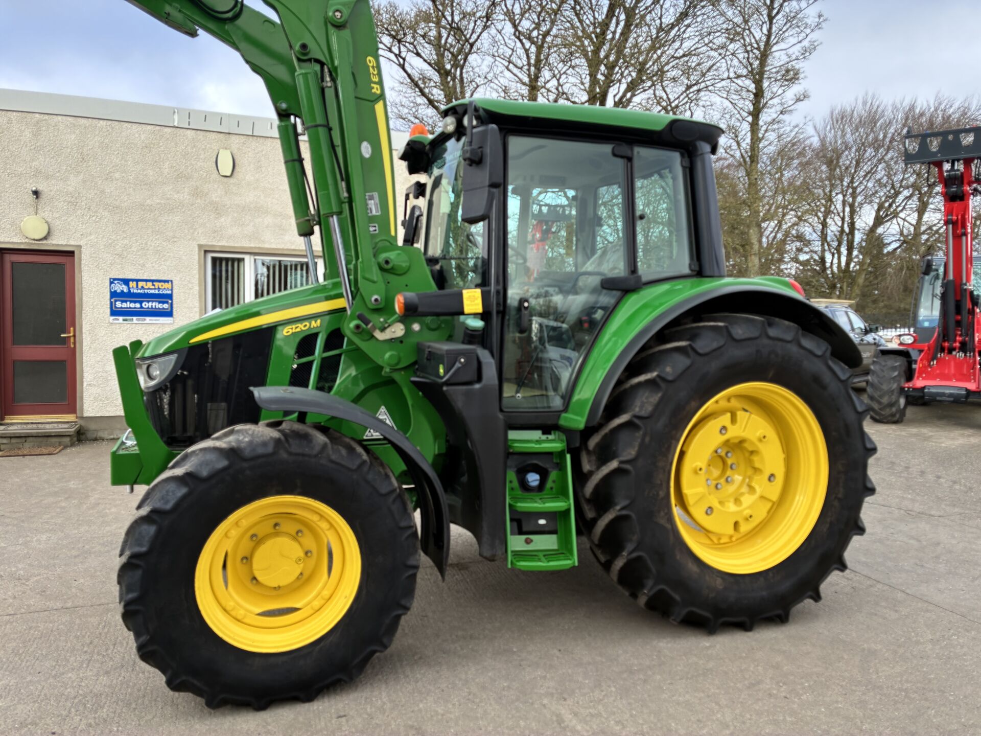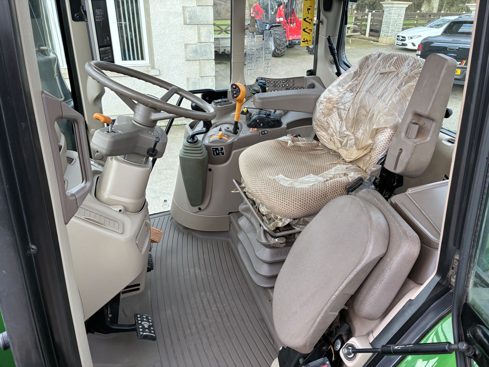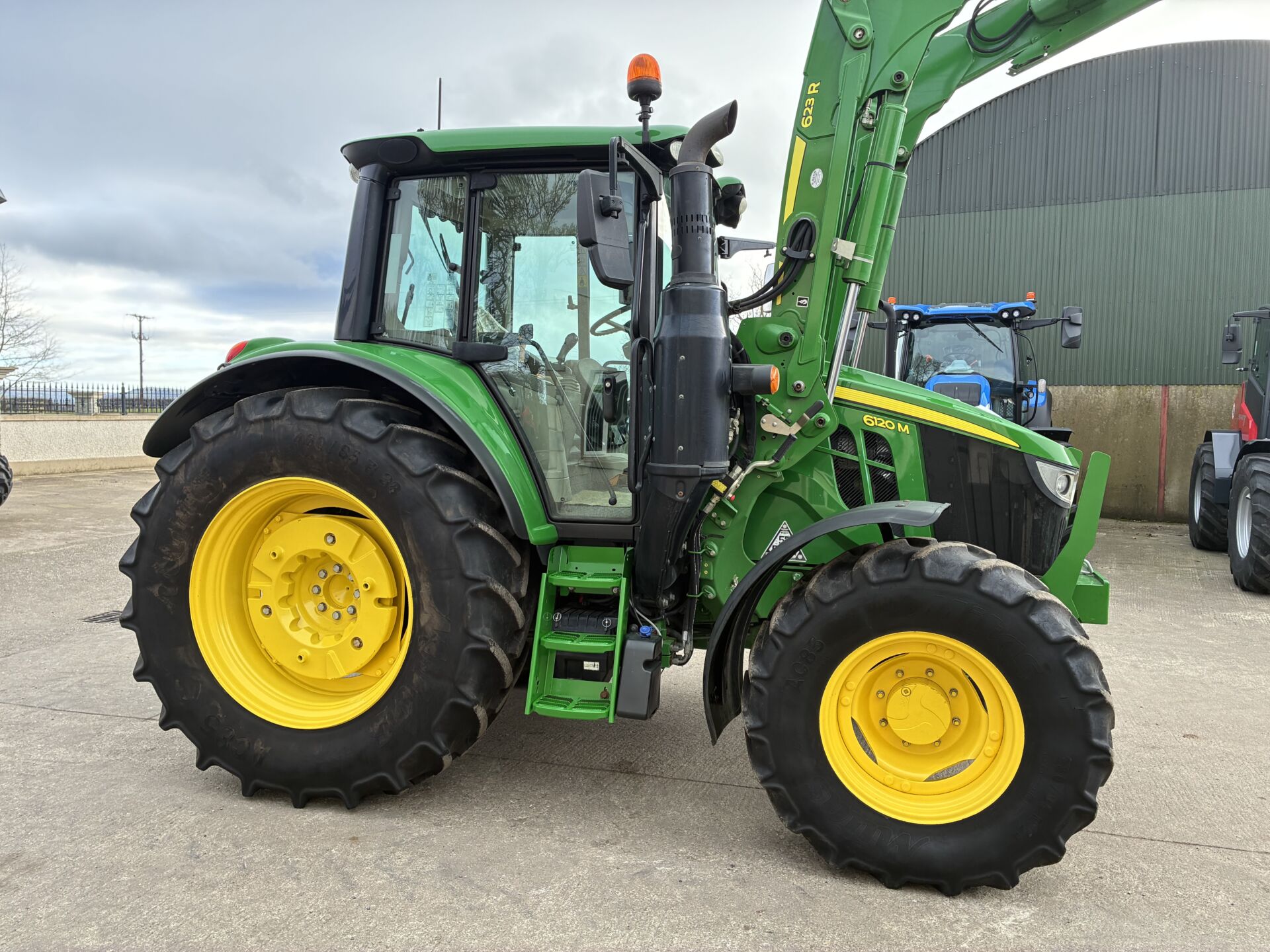 2022 JOHN DEERE 6120M WITH 3470 HOURS. C/W FACTORY FITTED JOHN DEERE 623R LOADER. TRACTOR HAS A 40KPH AUTO-QUAD GEARBOX WITH THE FORWARD-REVERSE GEAR-CHANGE FUNCTION ALSO ON LOADER JOYSTICK, FRONT TLS SUSPENSION, 2 MANUAL SPOOLS WITH THE 3RD SPOOL ON BUTTON TO OPERATE TELESCOPIC HITCH, HIGH FLOW HYDRAULIC PUMP, REAR WHEEL WEIGHTS, BIG MIRRORS, AIR SEAT, AIR CON, PASSENGER SEAT ETC…