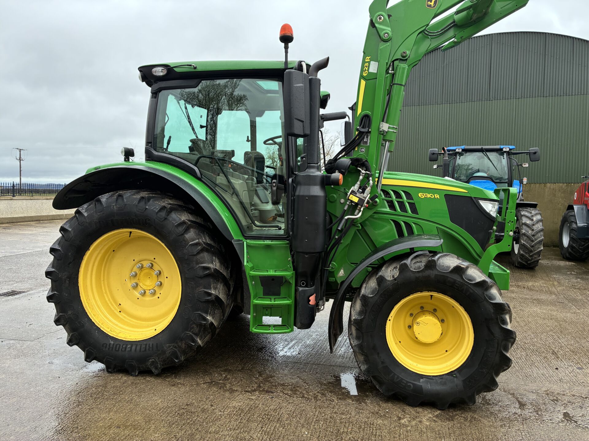 2018 JOHN DEERE 6130R WITH 5900HRS & JD 623R LOADER. TRACTOR HAS A 50KPH AUTOQUAD GEARBOX, AIR BRAKES, 3 SPOOLS, FRONT & CAB SUSPENSION, TELESCOPIC HITCH ON SEPERATE SPOOL / SWITCH, ISOBUS, 5 POST CAB (SIDE WINDOW), PANORAMIC ROOF, EXTRA WORK LIGHTS PACKAGE, WIDE ANGLE ELECTRIC HEATED MIRRORS, AIR / HEATED DRIVERS SEAT, PASSENGER SEAT, CLIMATE CONTROL, FIELD OFFICE, SUNROOF, BLUETOOTH RADIO WITH HANDSFREE ETC… 600/65/38 REAR & 540/65/24 FRONT TYRES.