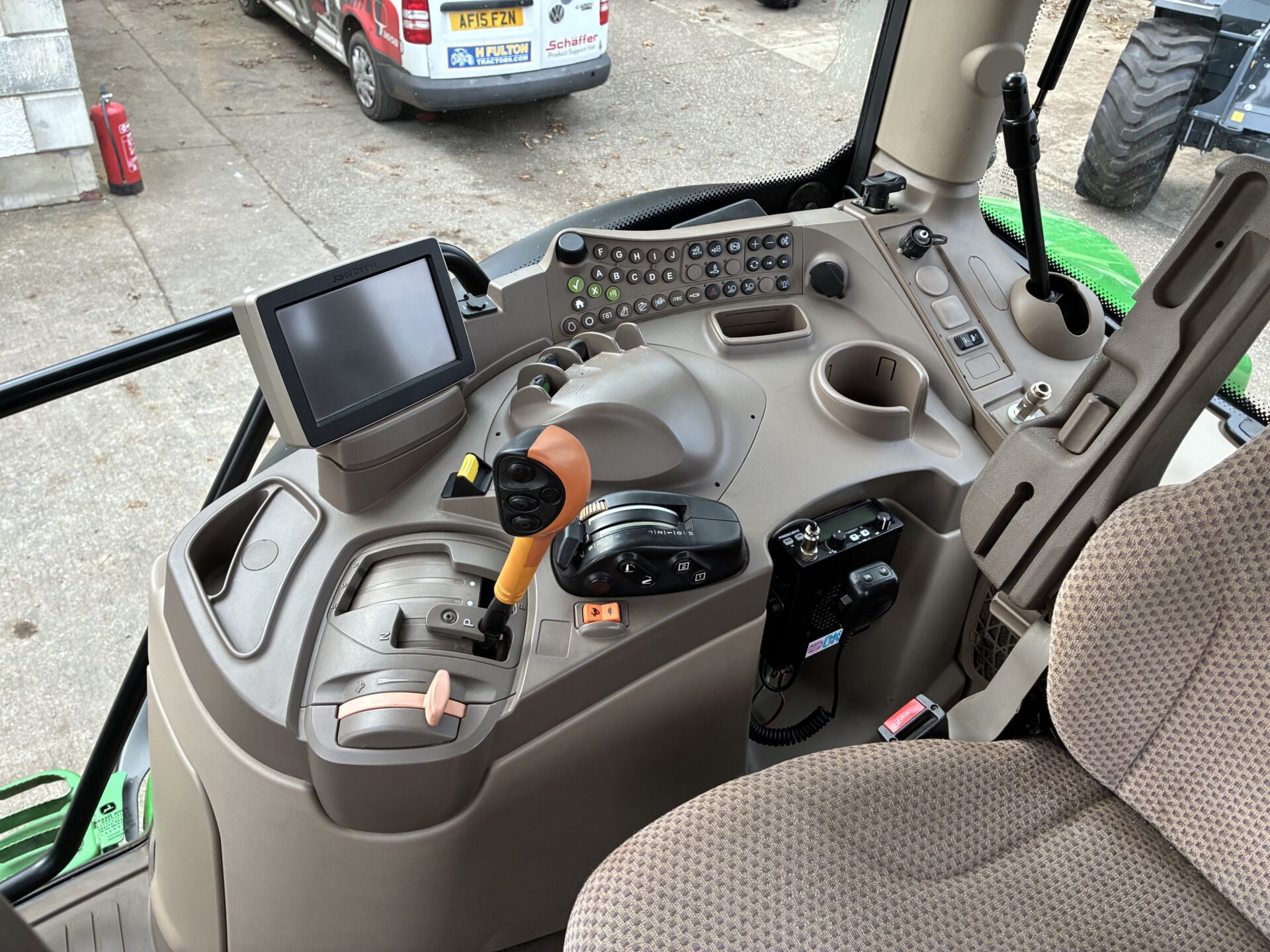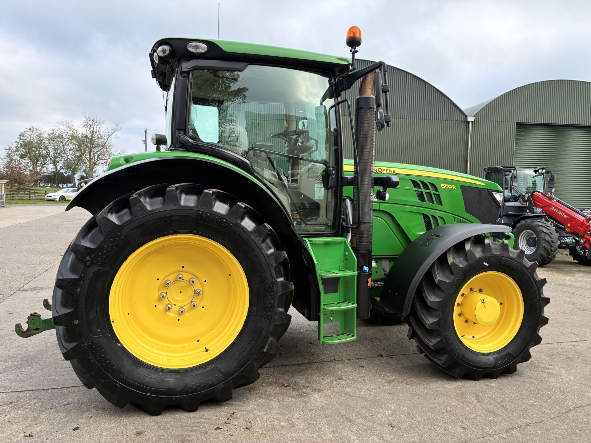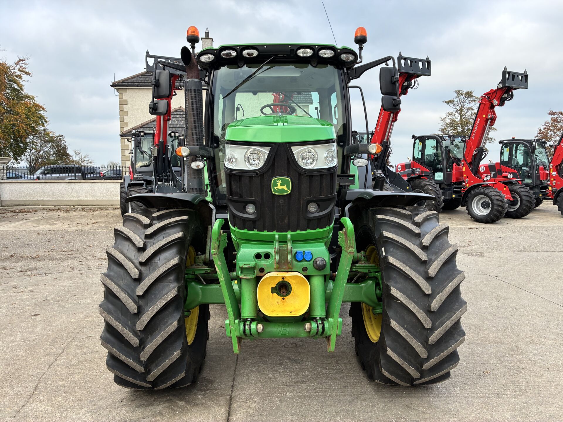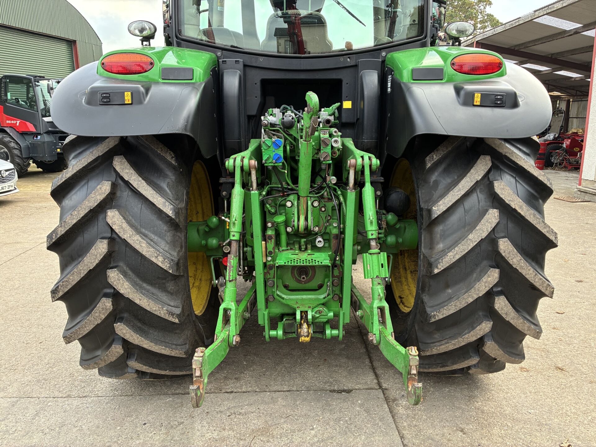 2014 JOHN DEERE 6150R WITH 9850HRS, 50KPH AUTO QUAD GEARBOX, AIR BRAKES, 3 SPOOLS, FRONT LINKAGE & PTO, TELESCOPIC HITCH ON SEPERATE SPOOL / SWITCH, LOAD SENSING HYDRAULICS, WIDE ANGLE MIRRORS, EXTRA WORKLIGHTS PACKAGE, TWIN FLASHERS, AIR / HEATED DRIVERS SEAT, PASSENGER SEAT, AIR CON, SUNROOF, FILED OFFICE, CB RADIO ETC… NEW ALLIANCE 650/65/38 REAR & 540/65/28 FRONT TYRES.