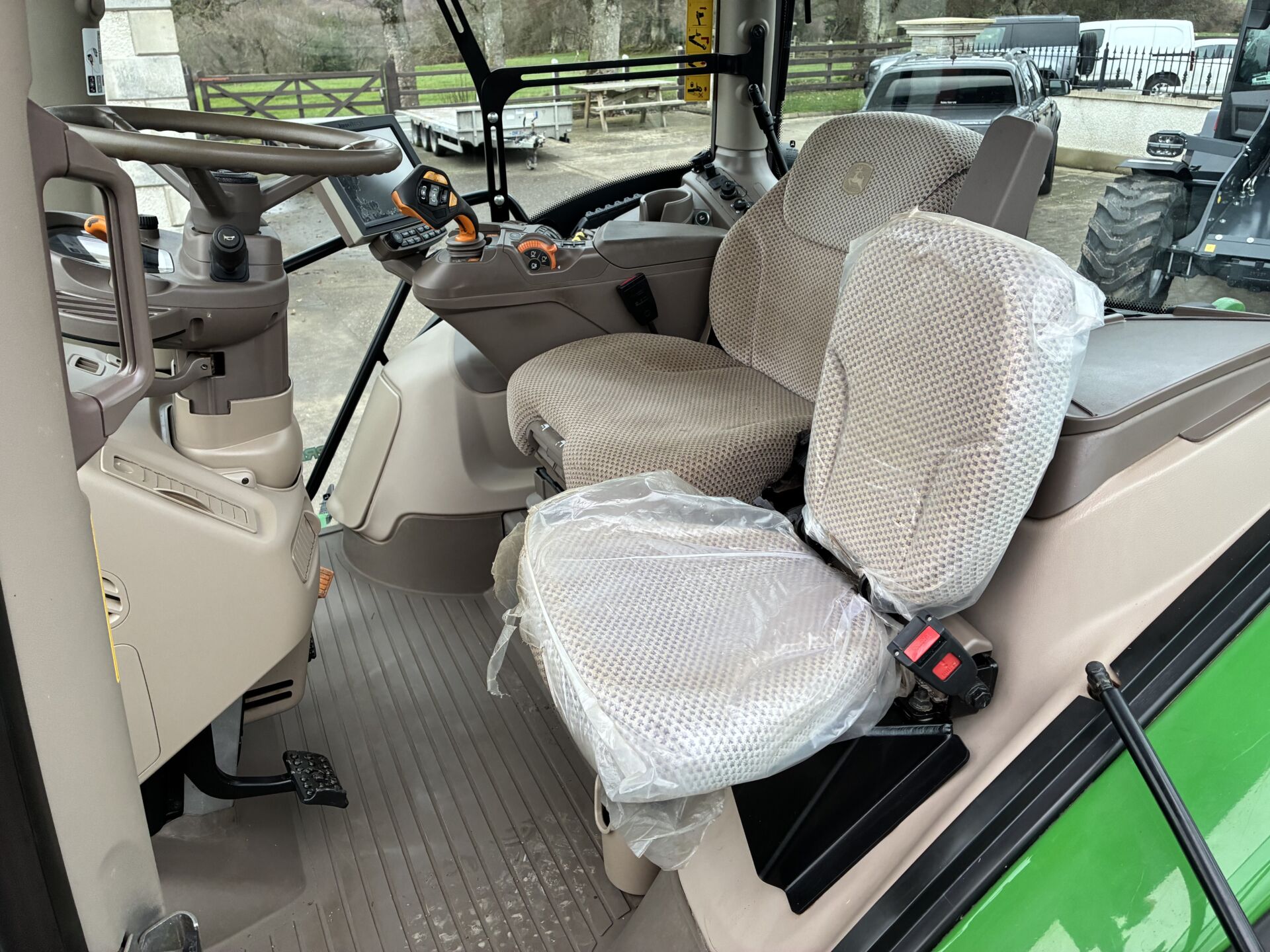 2020 JOHN DEERE 6155R WITH ONLY 2900HRS, 50KPH COMMAND PRO GEARBOX, AIR BRAKES, 4 REAR SPOOLS & 1 FRONT WITH JOYSTICK CONTROLS, FRONT LINKAGE & PTO, TELESCOPIC HITCH ON SEPERATE SPOOL / SWITCH, OVERSIZE WIDE ANGLE ELECTRIC HEATED MIRRORS, EXTRA WORK LIGHTS PACKAGE, TWIN FLASHERS, AIR / HEATED DRIVERS SEAT, PASSENGER SEAT, AIR CON, SUNROOF, BLUETOOTH RADIO WITH HANDSFREE, CB RADIO, FIELD OFFICE / FRIDGE, ISOBUS, AUTO TRAC ACTIVATED, ISOBUS DOCUMENTATION ACTIVATED, ROW SENSE ACTIVATED, SECTION CONTROL ACTIVATED ETC… TRELLEBORG 650/65/42 & 540/65/30 TYRES.