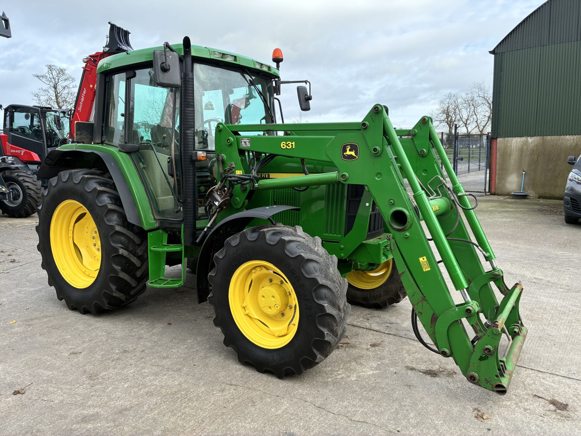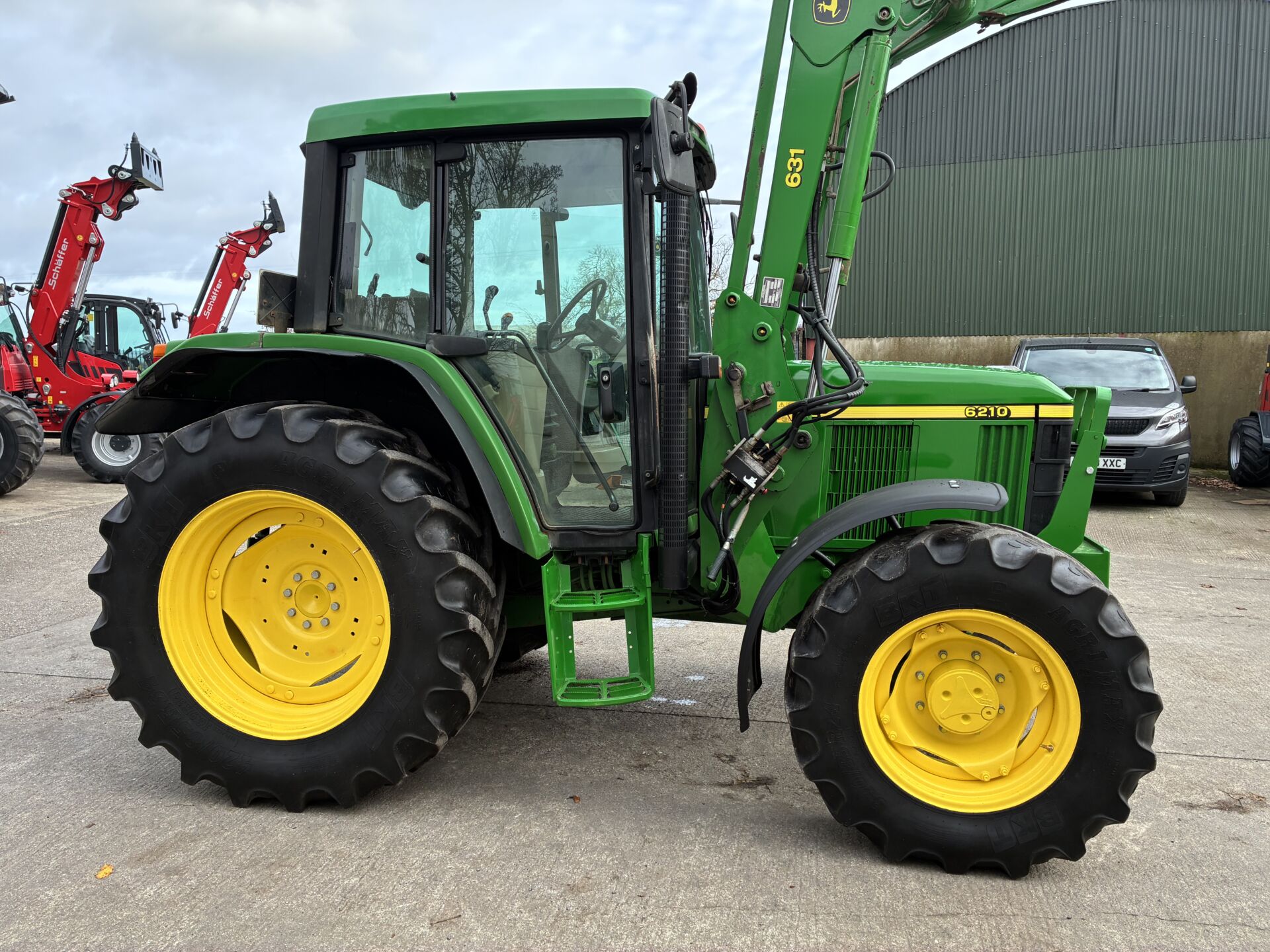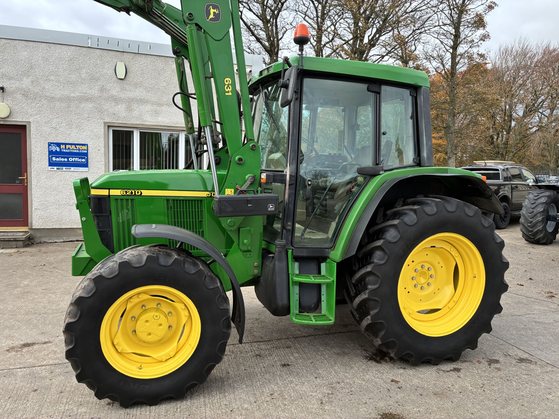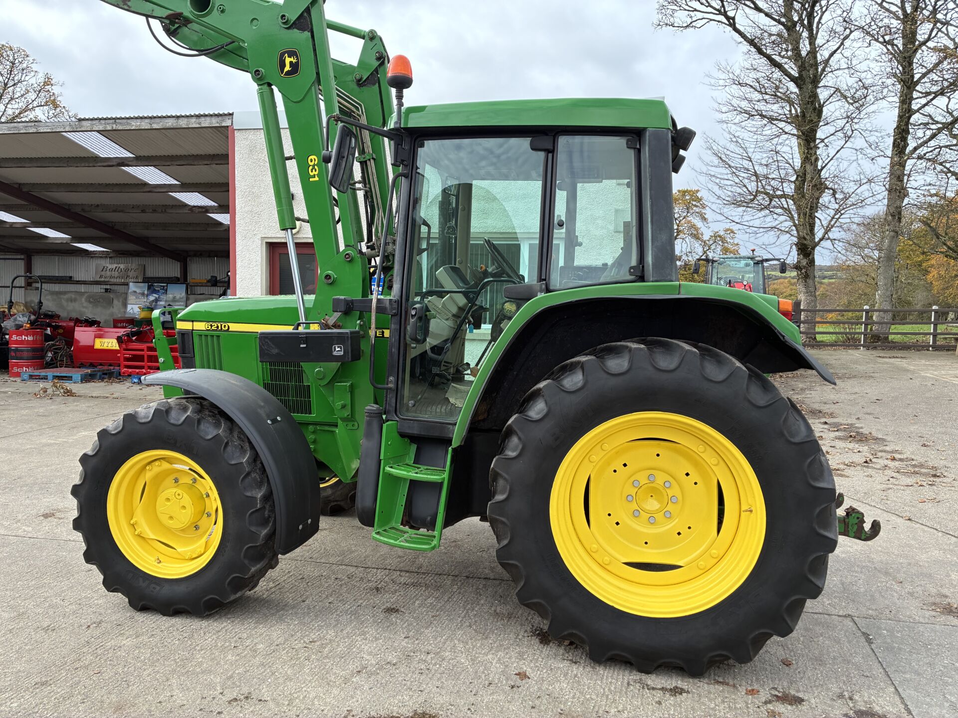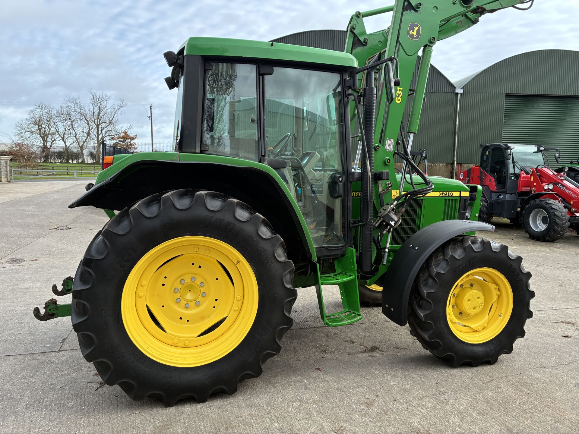 2001 JOHN DEERE 6210 WITH 6200HRS & JOHN DEERE 631 LOADER. TRACTOR HAS A 40KPH POWER QUAD GEARBOX, LEFT HAND FOWARD / REVERSE SHUTTLE, 3 MANUAL SPOOLS, TELESCOPIC HITCH, PASSENGER SEAT, SUNROOF ETC… BKT 420/85/34 REAR & 340/85/24 FRONT TYRES. TIDY TRACTOR FOR AGE.