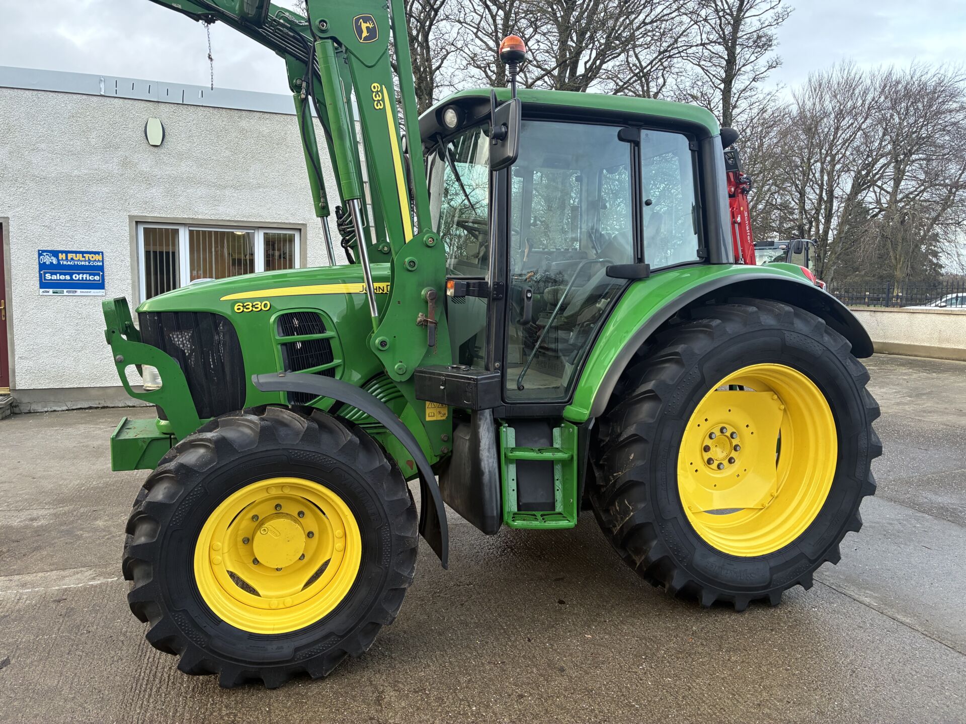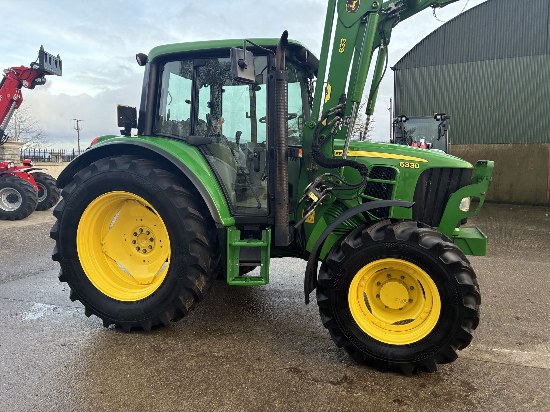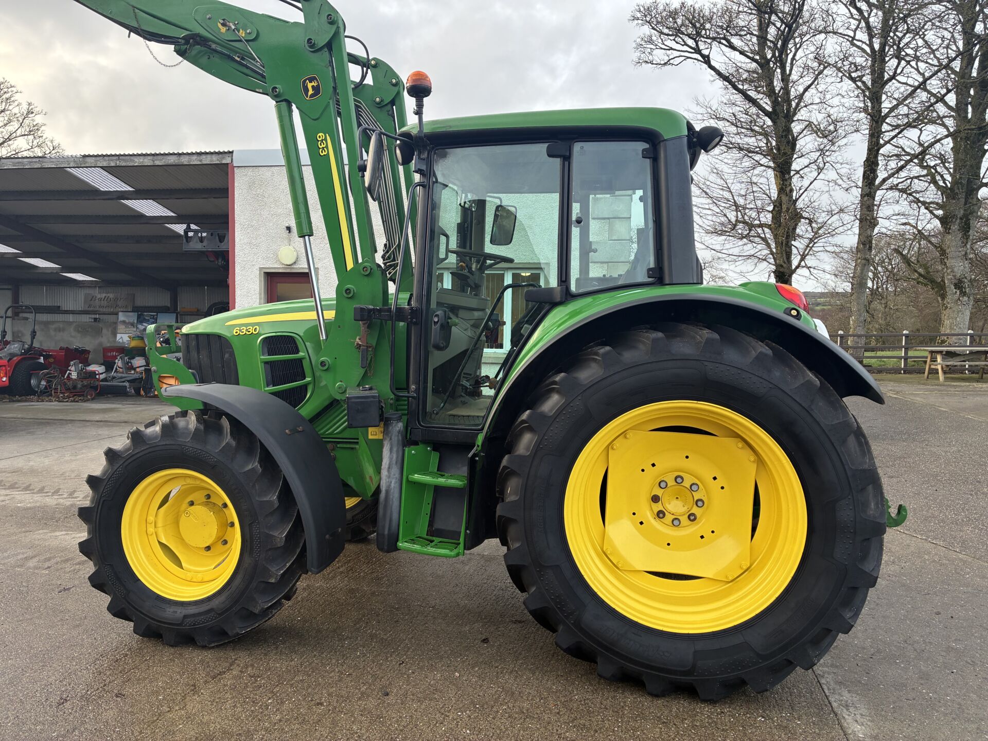 2009 JOHN DEERE 6330 WITH ONLY 5000HRS C/W JD 633 LOADER. TRACTOR HAS A 40KPH POWER QUAD GEARBOX, 2 MANUAL SPOOLS, CREEPER GEAR, TELESCOPIC HITCH, AIR SEAT, PASSENGER SEAT, AIR CON, SUNROOF ETC… NEW ALLIANCE 480/70/38 REAR & 380/70/24 FRONT TYRES.