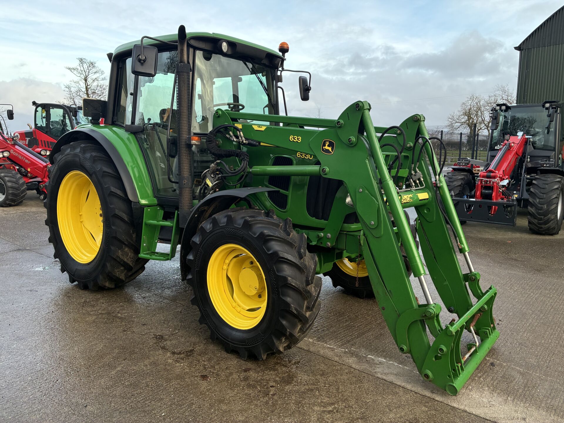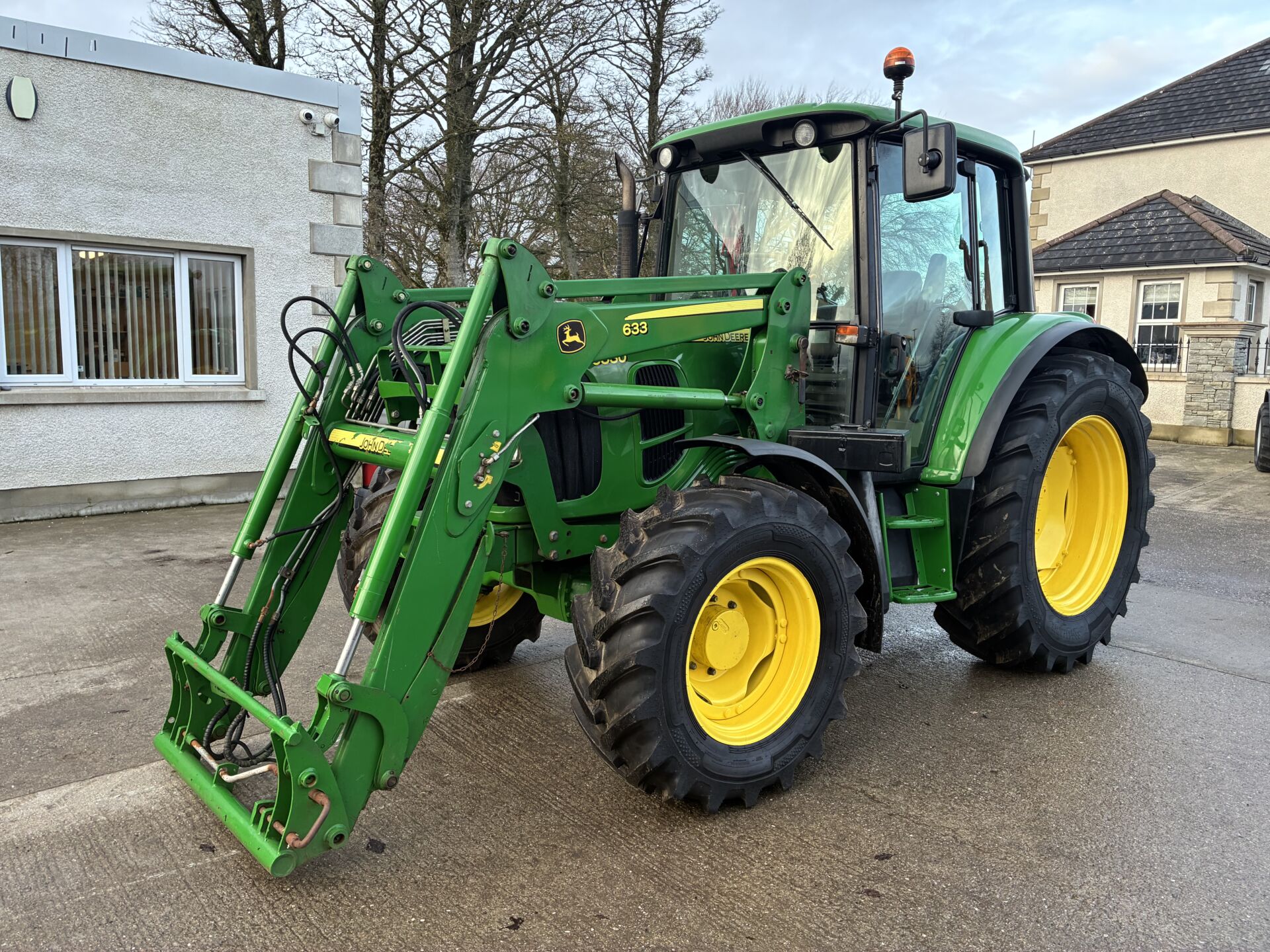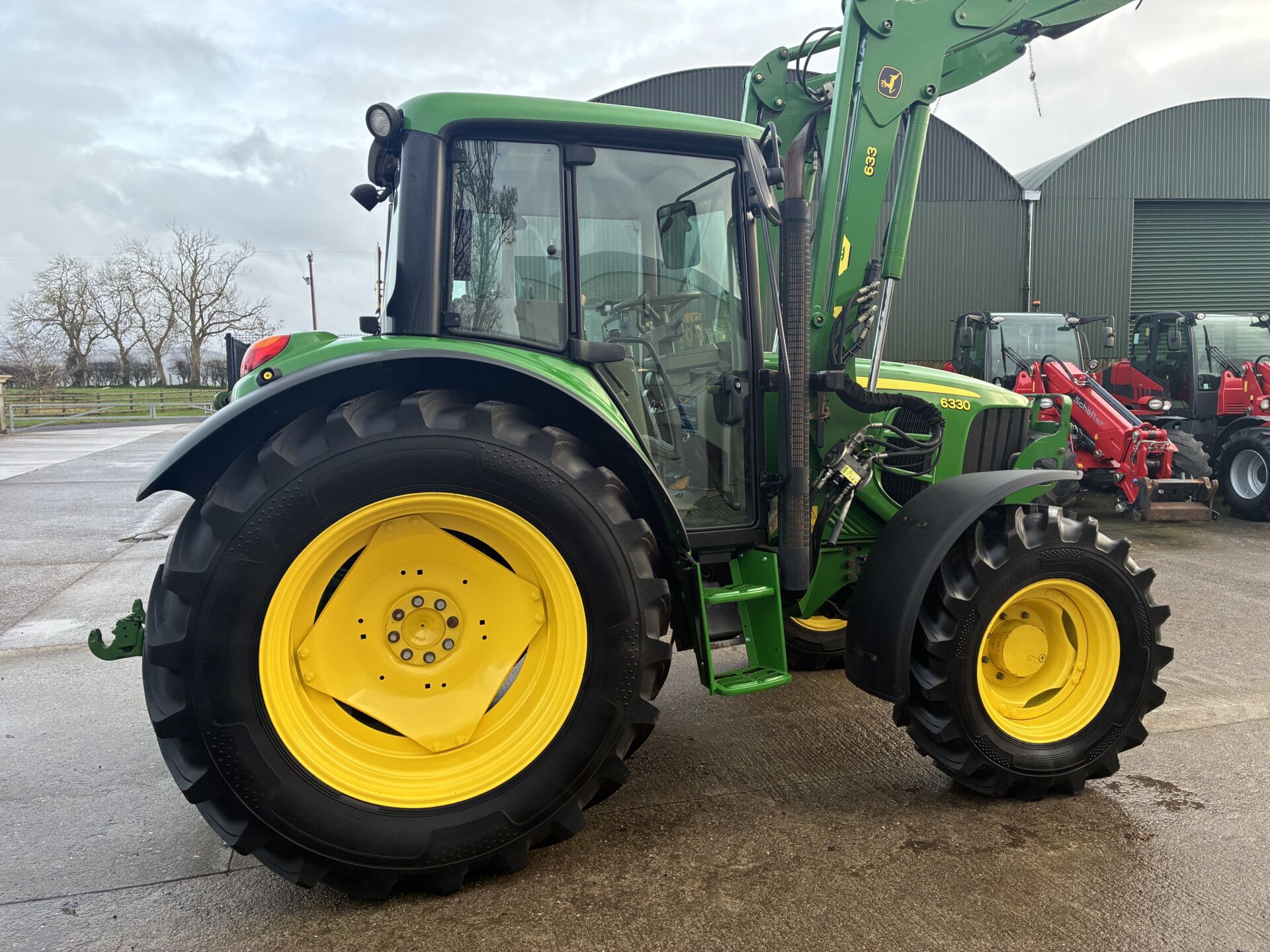 2009 JOHN DEERE 6330 WITH ONLY 5000HRS C/W JD 633 LOADER. TRACTOR HAS A 40KPH POWER QUAD GEARBOX, 2 MANUAL SPOOLS, CREEPER GEAR, TELESCOPIC HITCH, AIR SEAT, PASSENGER SEAT, AIR CON, SUNROOF ETC… NEW ALLIANCE 480/70/38 REAR & 380/70/24 FRONT TYRES.