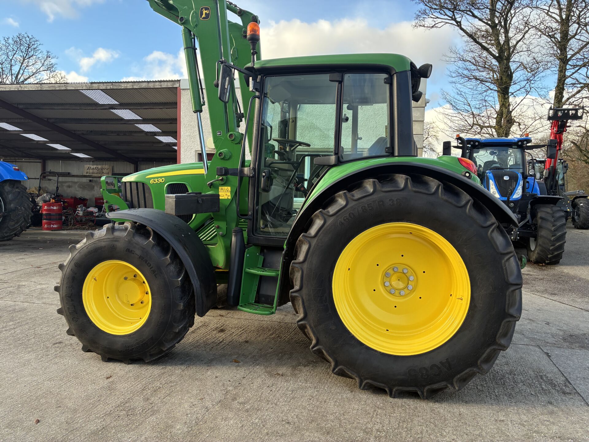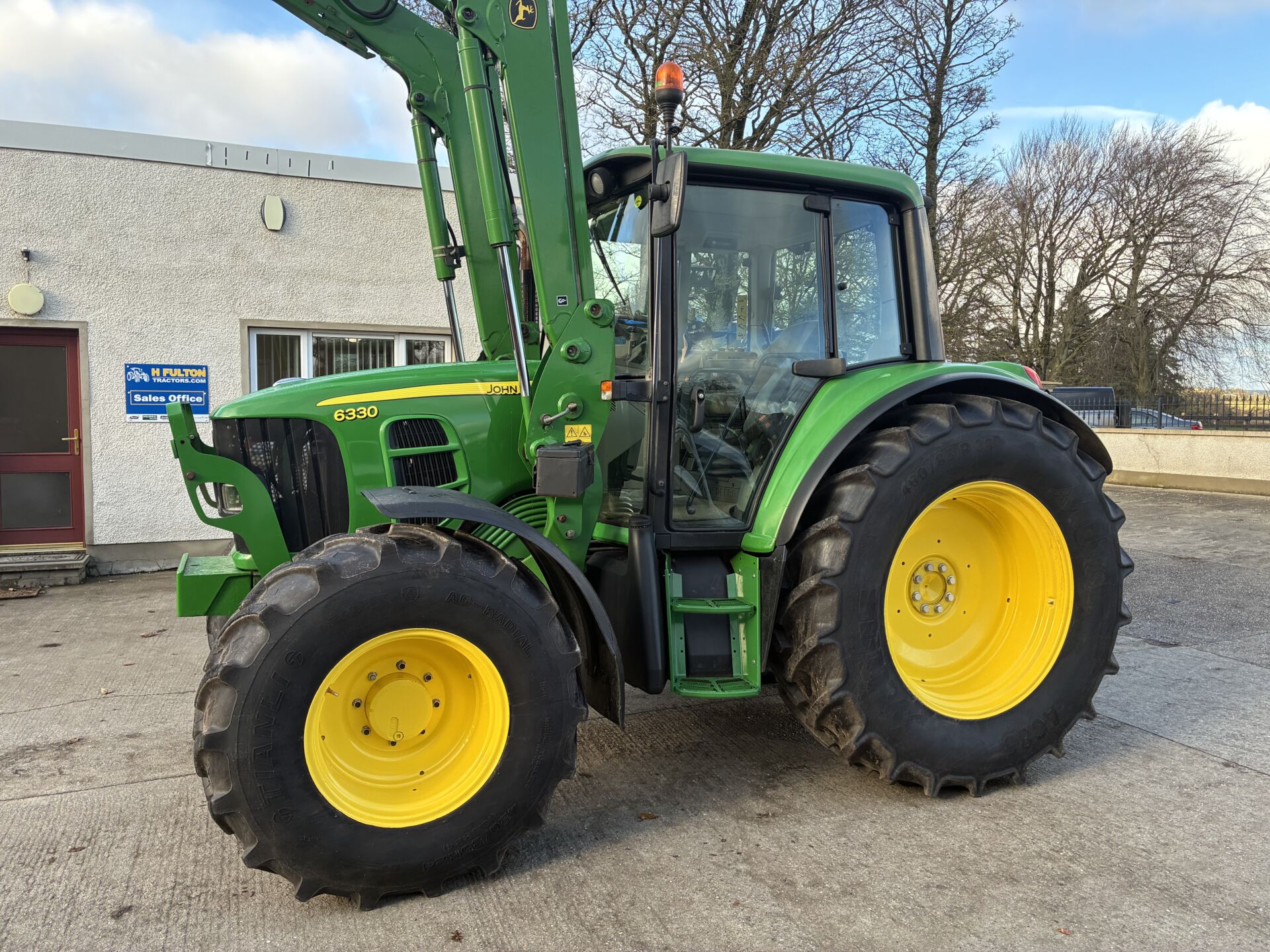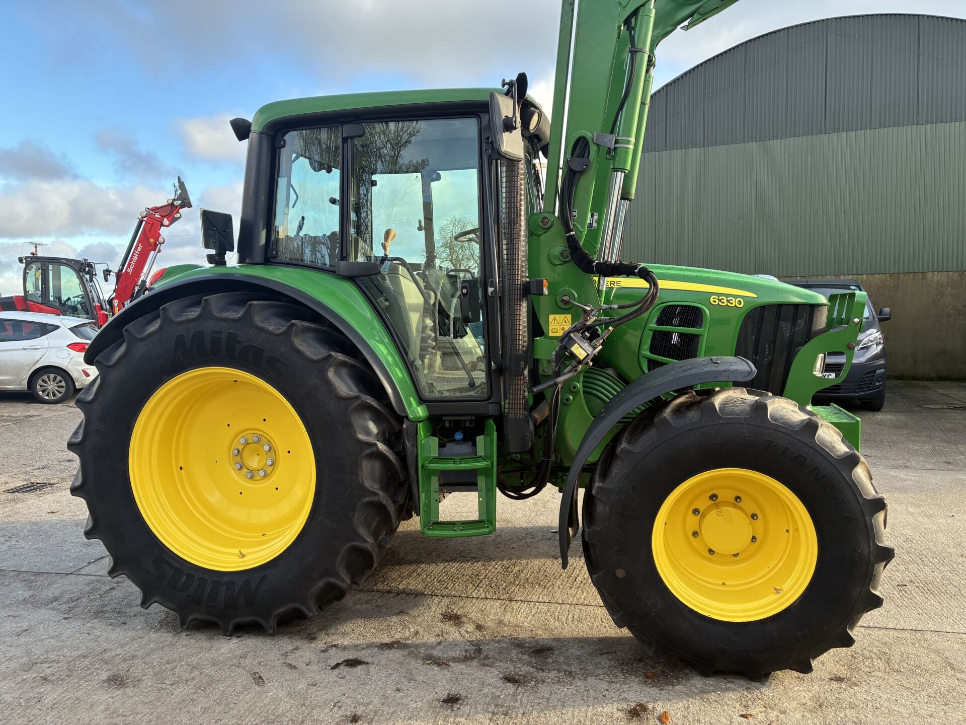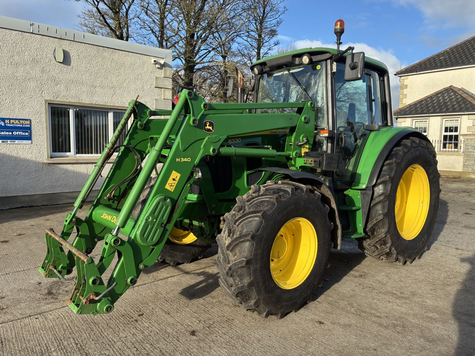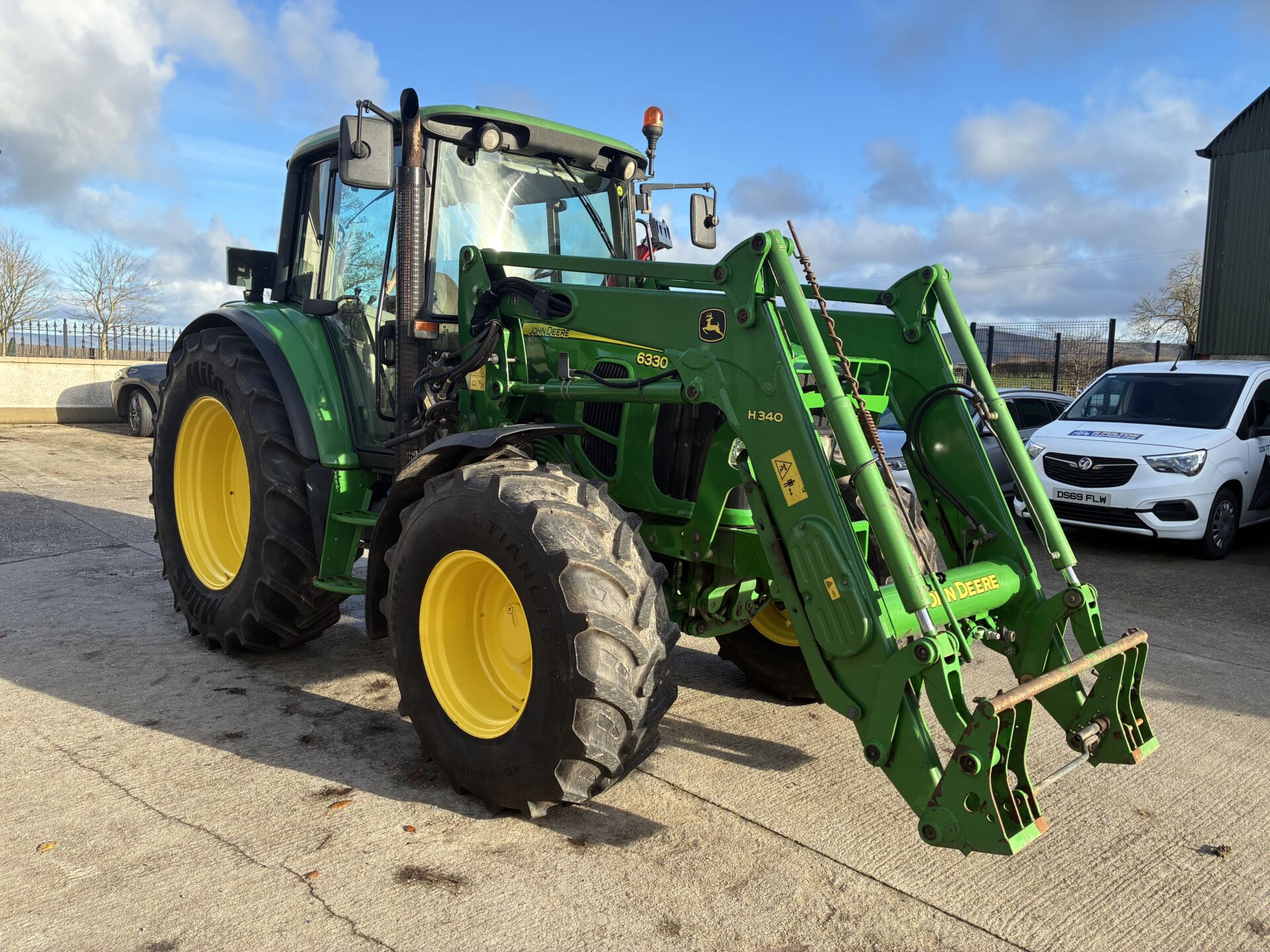 2012 JOHN DEERE 6330 WITH 8000HRS & JD H340 LOADER. TRACTOR HAS 40KPH POWER QUAD GEARBOX, 3 MANUAL SPOOLS, FRONT TLS SUSPENSION, TELESCOPIC HTICH, AIR SEAT, AIR CON, PASSENEGR SEAT, SUNROOF ETC… 460/85/38 REAR & 420/85/24 FRONT TYRES. NICE TIDY EXAMPLE !!