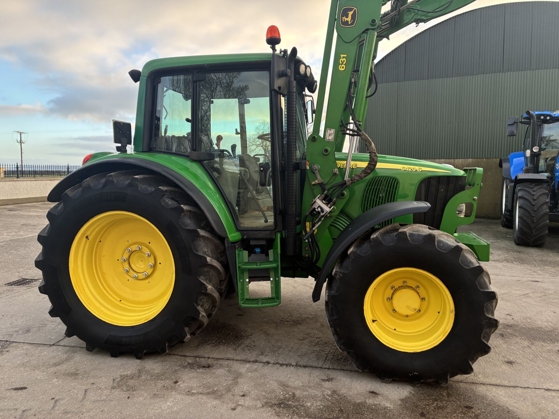 2004 JOHN DEERE 6420S & JD 631 LOADER. TRACTOR HAS 9790HRS, 50KPH AUTOQUAD GEABROX, 3 MANUAL SPOOLS, FRONT TLS SUSPENSION, TELESCOPIC HITCH, TWIN FLASHERS, AIR SEAT, PASSENGER SEAT, AIR CON, SUNROOF ETC… CEAT 600/65/38 REAR & 480/70/24 FRONT TYRES.
