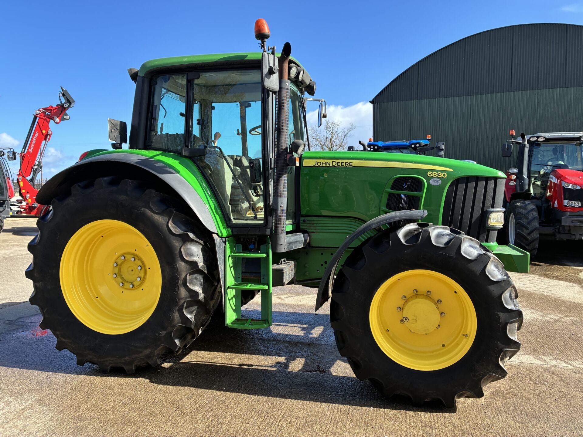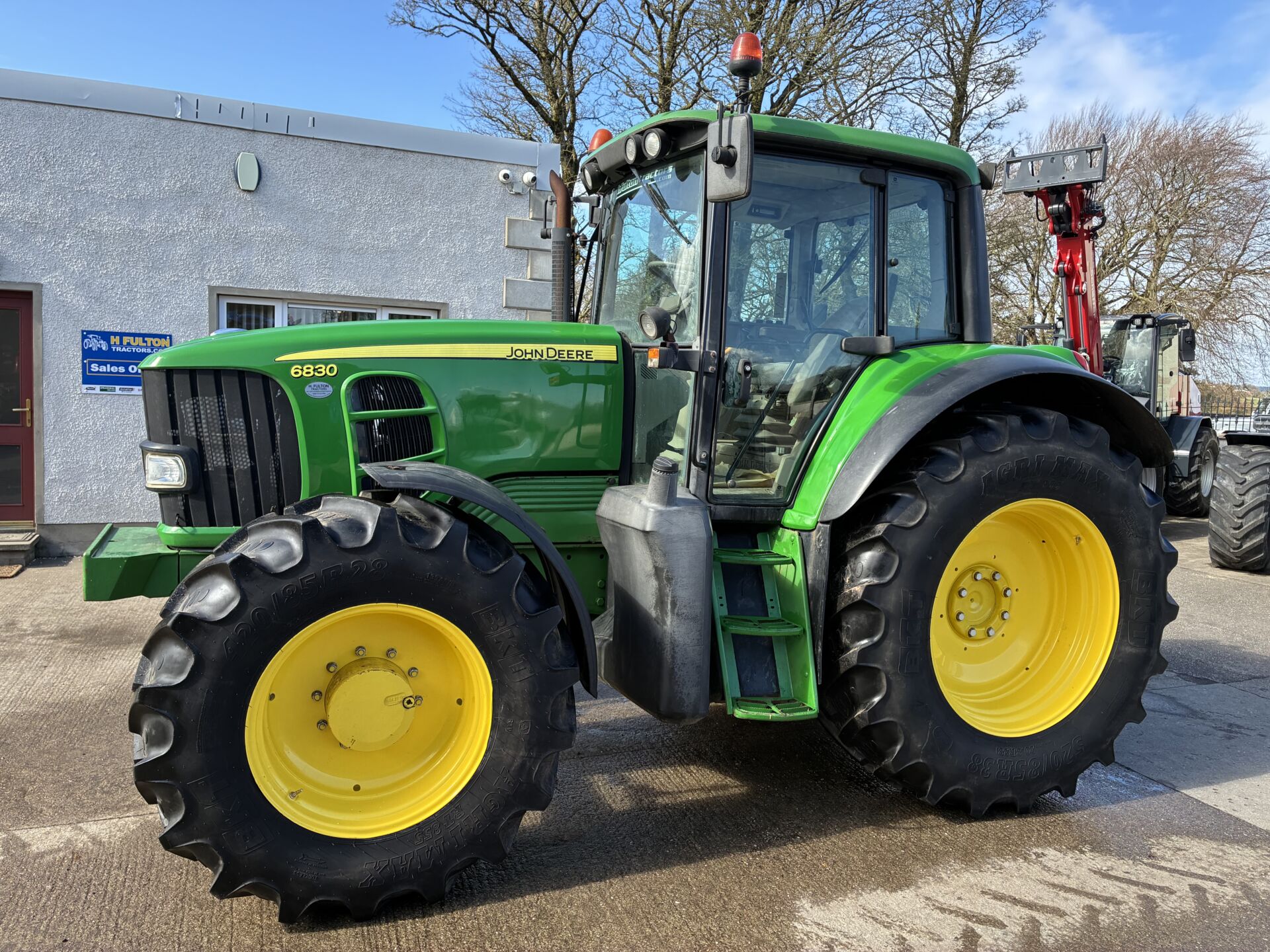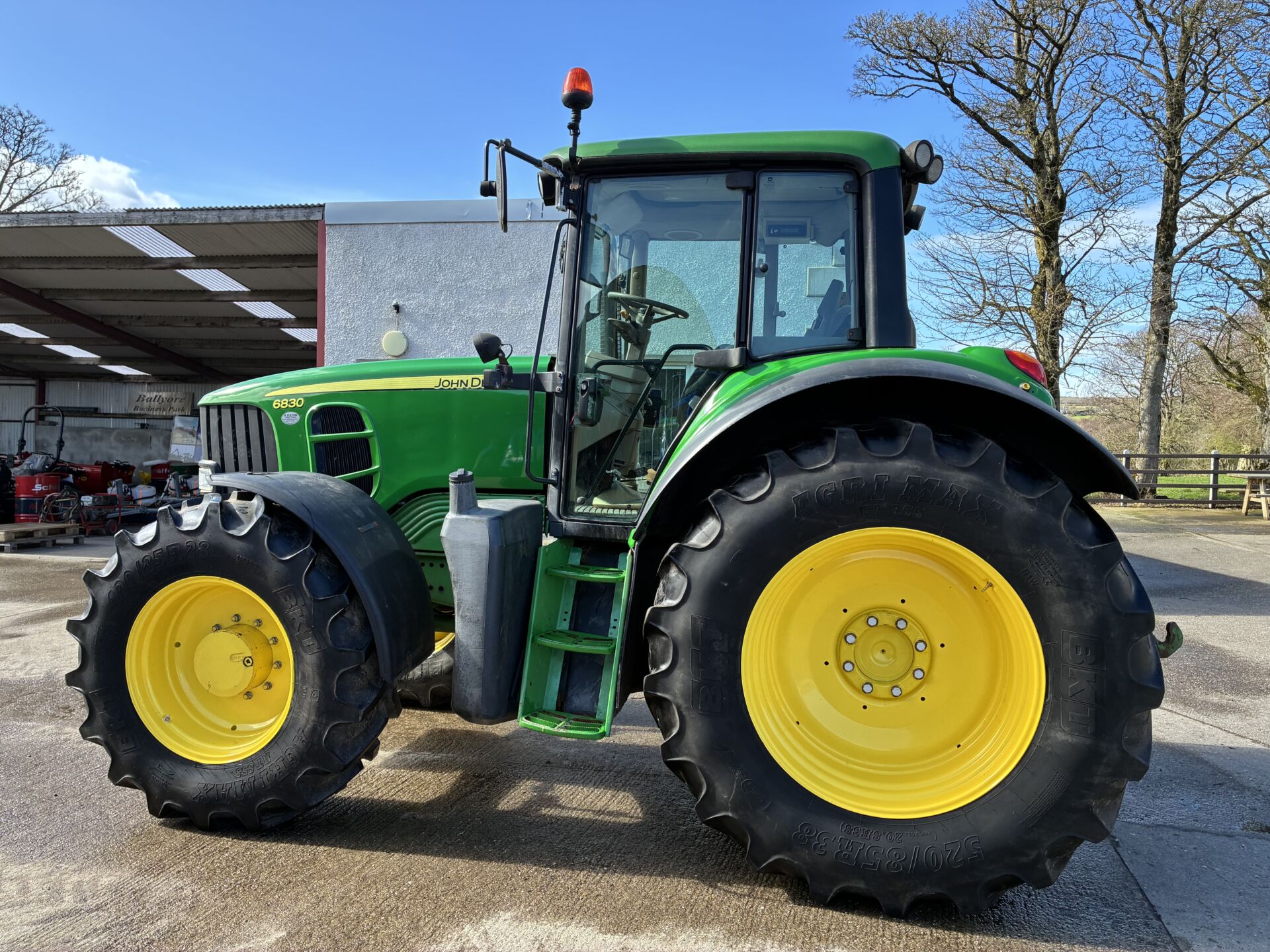 2009 JOHN DEERE 6830 WITH 9320HRS, 40KPH POWER QUAD GEARBOX, 3 MANUAL SPOOLS, PUSH OUT HITCH, AIR SEAT, PASSENGER SEAT, AIR CON, SUNROOF, BLUETOOTH RADIO, TWIN FLASHERS ETC… BKT 520/85/38 REAR & 420/85/28 70% … GENUINE LOCAL PART EXCHANGE.