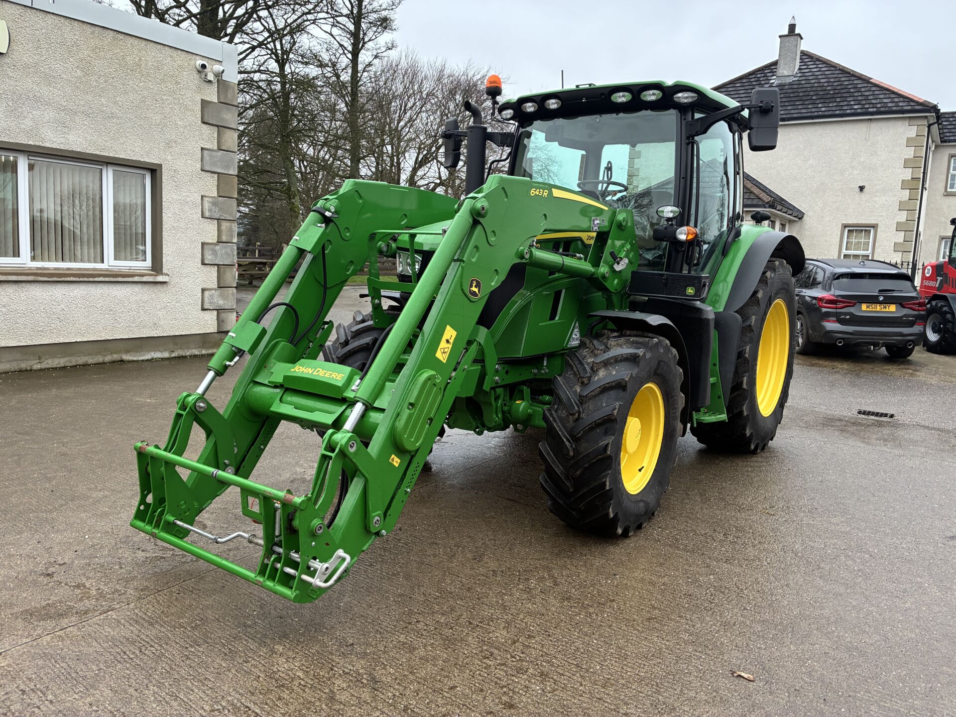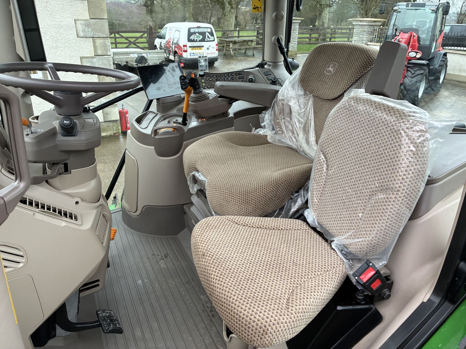 2024 JOHN DEERE 6R120 WITH 350HRS & FACTORY FITTED JD 643R LOADER. TRACTOR HAS A 50KPH AUTOQUAD GEARBOX, AIR BRAKES, 3 SPOOLS, FRONT & CAB SUSPENSION, TELESCOPIC HITCH ON SEPERATE SPOOL / SWITCH, EXTRA WORK LIGHTS PACKAGE, WIDE ANGLE MIRRORS, 5 POST CAB ( SIDE WINDOW ), ISOBUS, AIR / HEATED DRIVERS SEAT, PASSENGER SEAT, FIELD OFFICE, CLIMATE CONTROL, SUNROOF, BLUETOOTH RADIO WITH HANDSFREE, GPS READY ETC… BRIDGESTONE 520/70/38 REAR & 420/70/24 FRONT TYRES 95%.