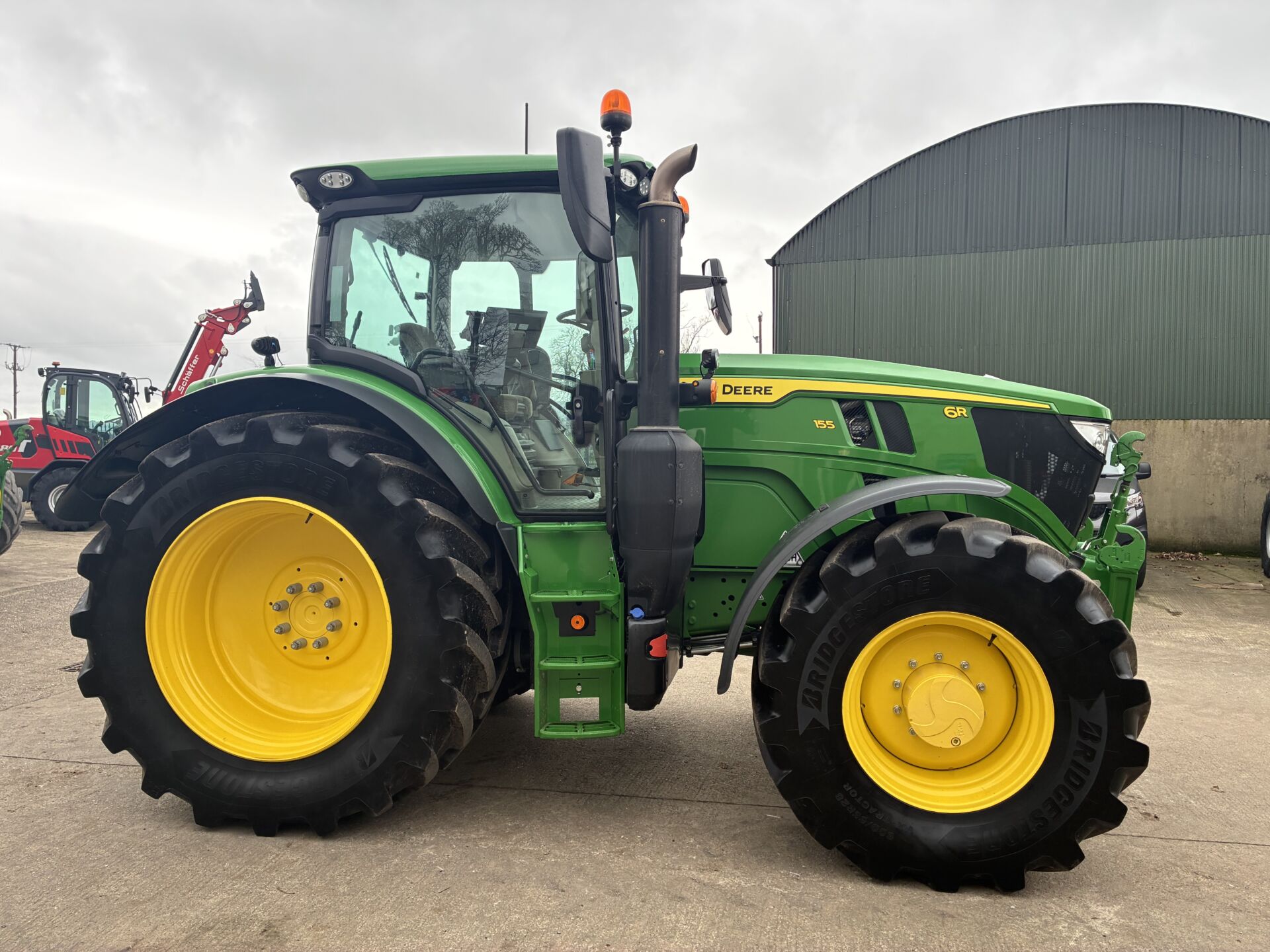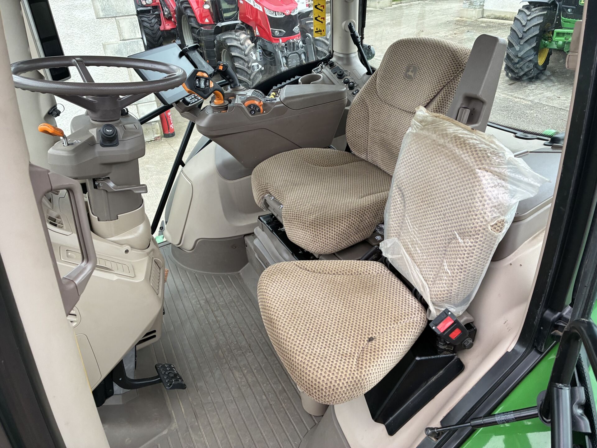 SEPTEMBER 2024 JOHN DEERE 6R155 ( LATEST GENERATION ) WITH 1500HRS, 50KPH COMMAND PRO GEARBOX, AIR BRAKES, FRONT LINKAGE & PTO, 5 REAR SPOOLS & 1 FRONT WITH JOYSTOCK, FRONT & CAB SUSPENSION, HYDRAULIC TOP LINK WITH MUDGUARD BUTTONS, TELESCOPIC HITCH ON SEPERATE SPOOL / SWITCH, 5 POST CAB ( SIDE WINDOW ), LED LIGHTS, EXTRA WORKLIGHTS PACKAGE, TWIN FLASHERS, WIDE ANGLE ELECTRIC / HEATED MIRRORS, VARIABLE STEERING, ISOBUS, AIR / HEATED DRIVERS SEAT, PASSENGER SEAT, SUNROOF, CLIMATE CONTROL, FILED OFFICE / FRIDGE, 12.8 INCH G5 PLUS DISPLAY ( BIG SCREEN ), TOUCH SCREEN / BLUETOOTH / HANDSFREE / DIGITAL / APPLE CAR PLAY RADIO SYSTEM, AUTO TRAC TURN AUTOMATION, AUTOTRAC ACTIVATED, SECTION CONTROL ACTIVATED ETC… BRIDGESTONE 650/65/42 REAR & 600/65/28 TYRES 80%.