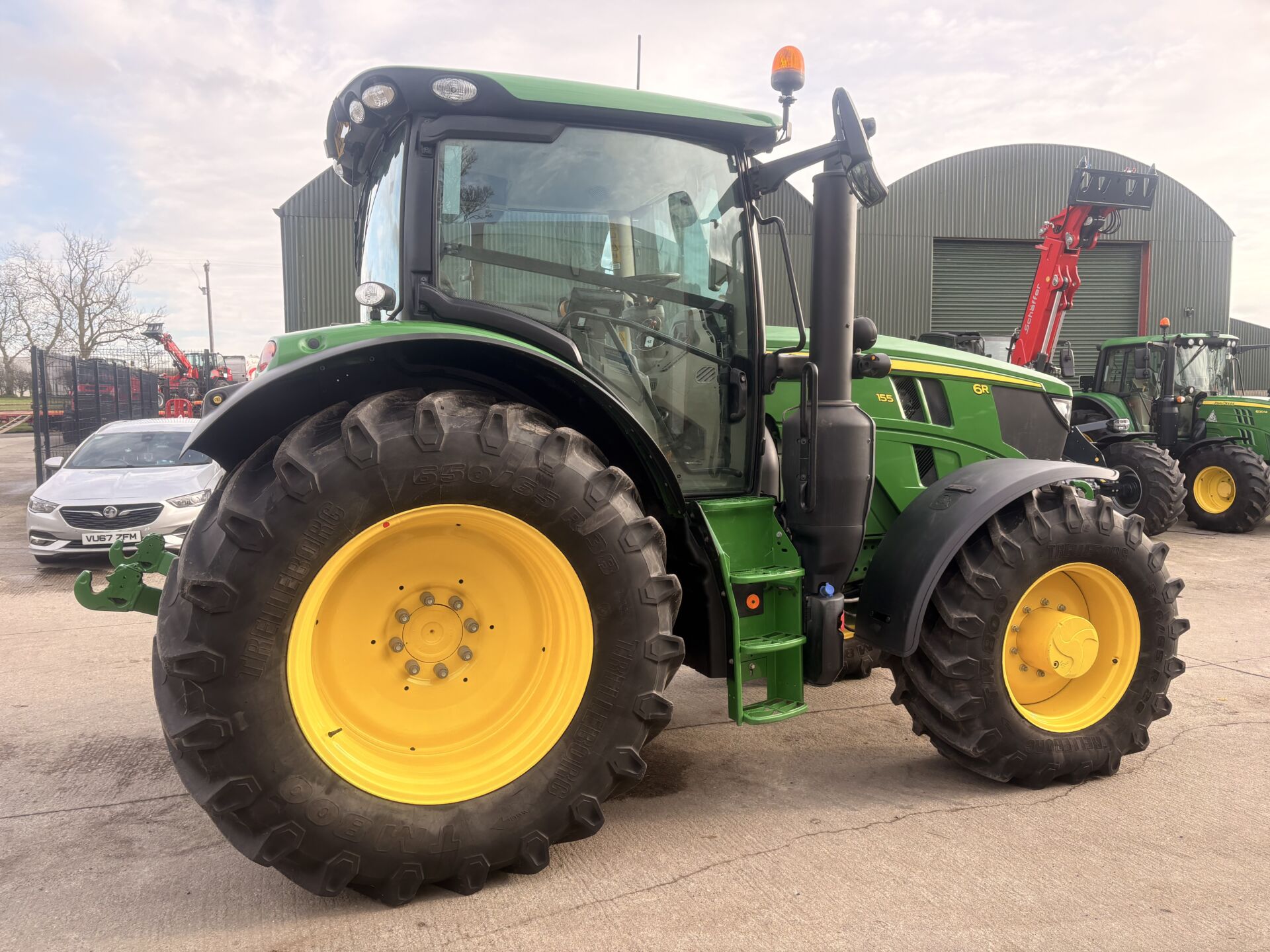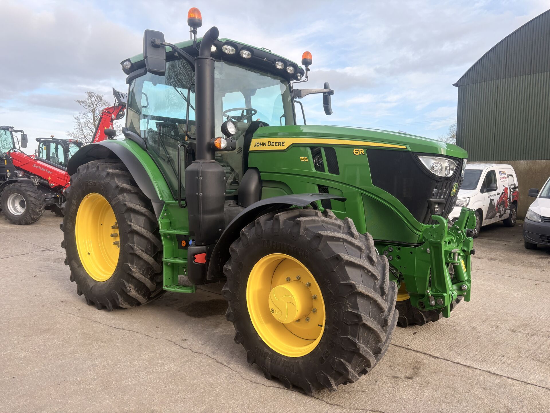 2024 JOHN DEERE 6R155 WITH 3500HRS, 50KPH AUTO QUAD GEARBOX , 5 POST CAB/SIDE WINDOW, AIR BRAKES, FRONT LINKAGE , 3 REAR SPOOLS WITH JOYSTICK, LOAD SENSING HYDRAULICS, 3RD SPOOL ON MUDGAURD AS WELL AS LIFT AND PTO BUTTONS , TELESCOPIC HITCH ON SEPERATE SPOOL / SWITCH, FRONT & CAB SUSPESNION, ISOBUS, MACHINE SYNC ACTIVATED, TWIN FLASHERS, LATEST MODEL OF PREMIUM AIR / HEATED DRIVERS SEAT, PASSENEGR SEAT ,12.8 INCH G5 PLUS DISPLAY (BIG SCREEN), TOUCH SCREEN / BLUETOOTH / HANDSFREE / DIGITAL / APPLE CAR PLAY RADIO SYSTEM, G5 AUTOTRAC ACTIVATED, G5 SECTION CONTROL ACTIVATED ETC… 650/65/38 REAR & 540/65/28 FRONT TYRES.