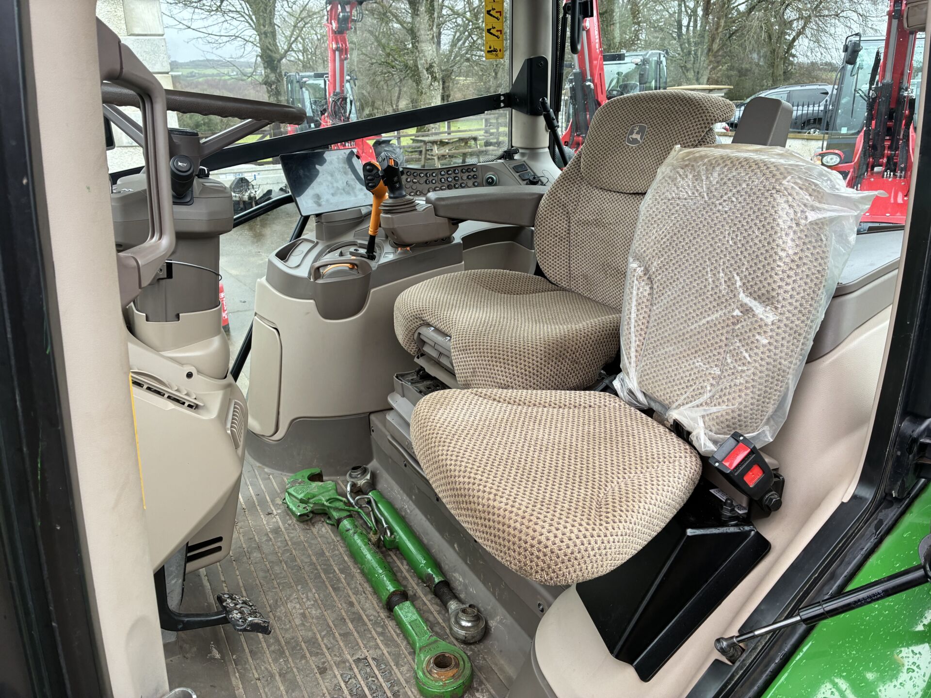 2024 JOHN DEERE 6R155 WITH 3500HRS, 50KPH AUTO QUAD GEARBOX, AIR BRAKES, FRONT LINKAGE , 3 REAR & 1 FRONT SPOOLS WITH JOYSTICK, SPOOL BUTTON ON MUDGAURD, LOAD SENSING HYDRAULICS, TELESCOPIC HITCH ON SEPERATE SPOOL / SWITCH, FRONT & CAB SUSPESNION, EXTRA WORKLIGHTS PACKAGE, TWIN FLASHERS, WIDE ANGLE MIRRORS, 5 POST CAB/SIDE WINDOW, ISOBUS, AIR / HEATED DRIVERS SEAT, PASSENEGR SEAT, FIELD OFFICE, AIR CON, BLUETOOTH RADIO WITH HANDSFREE, AUTOTRAC ACTIVATED… TRELLEBORG 650/65/38 REAR & 540/65/28 FRONT TYRES 70%.