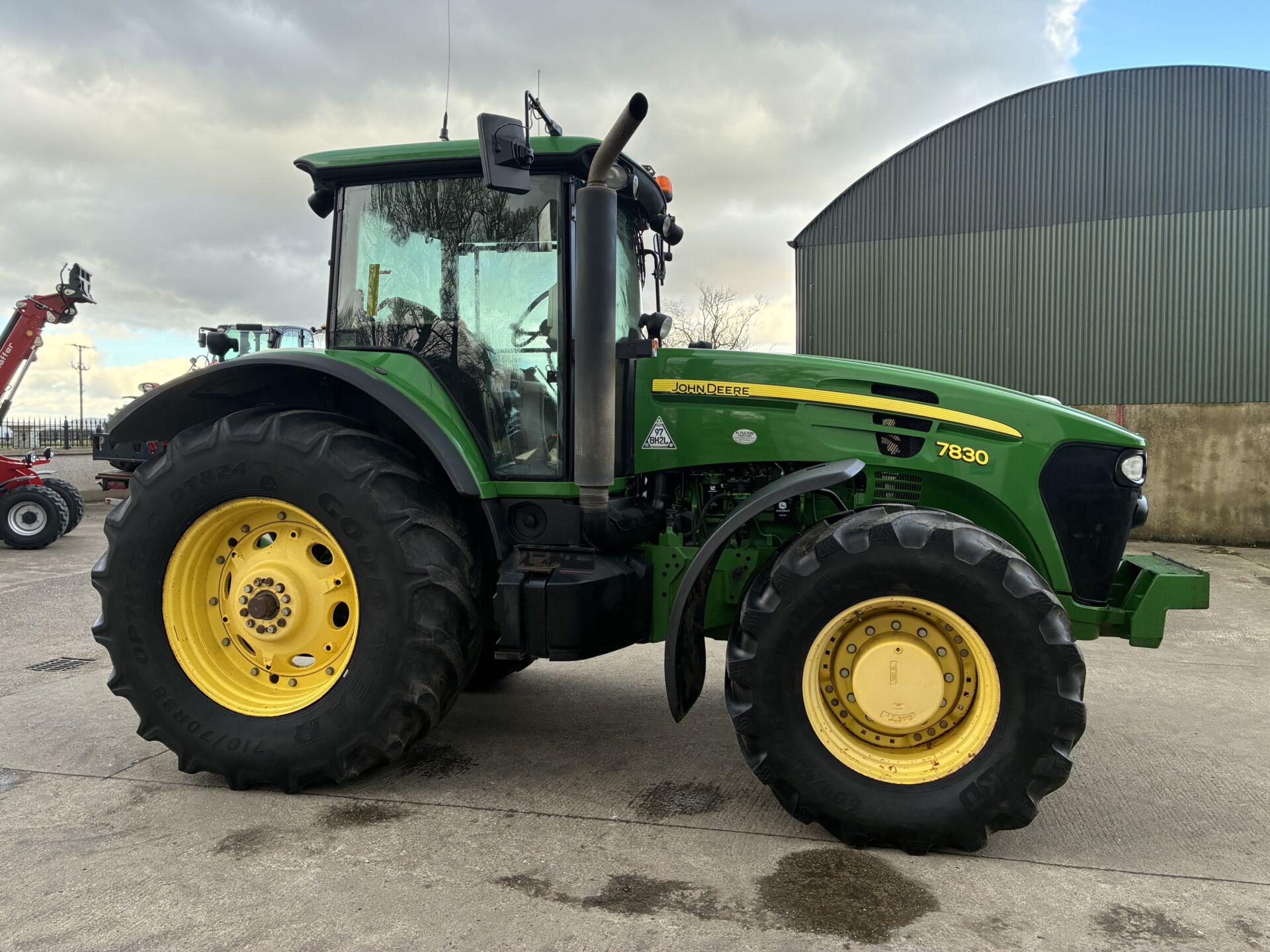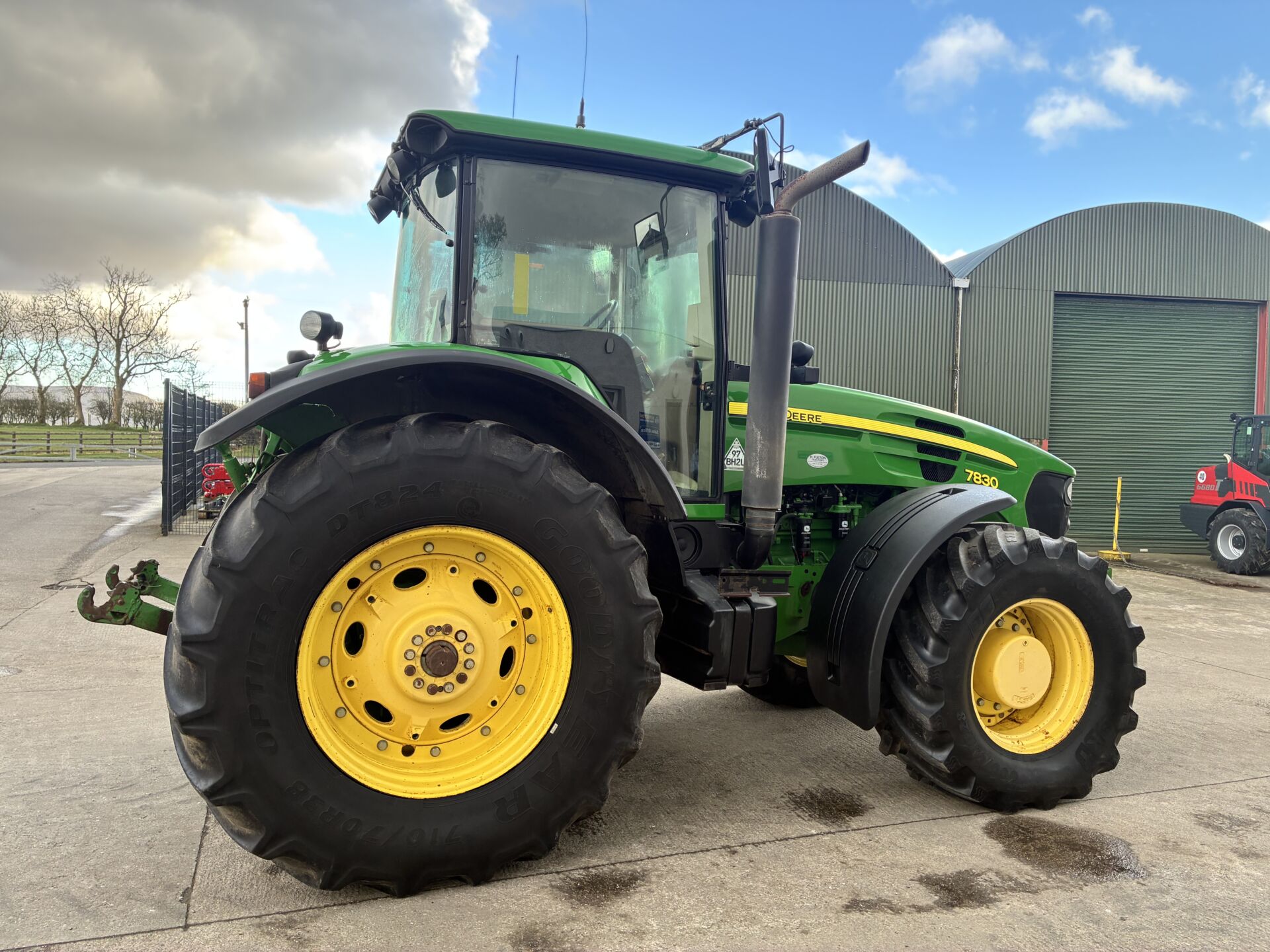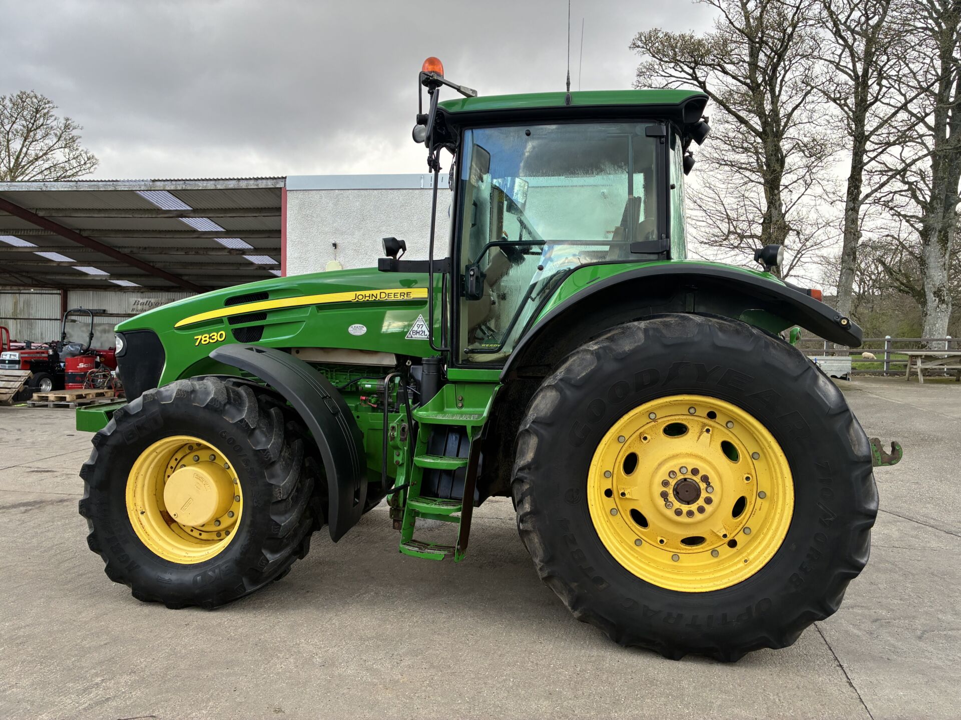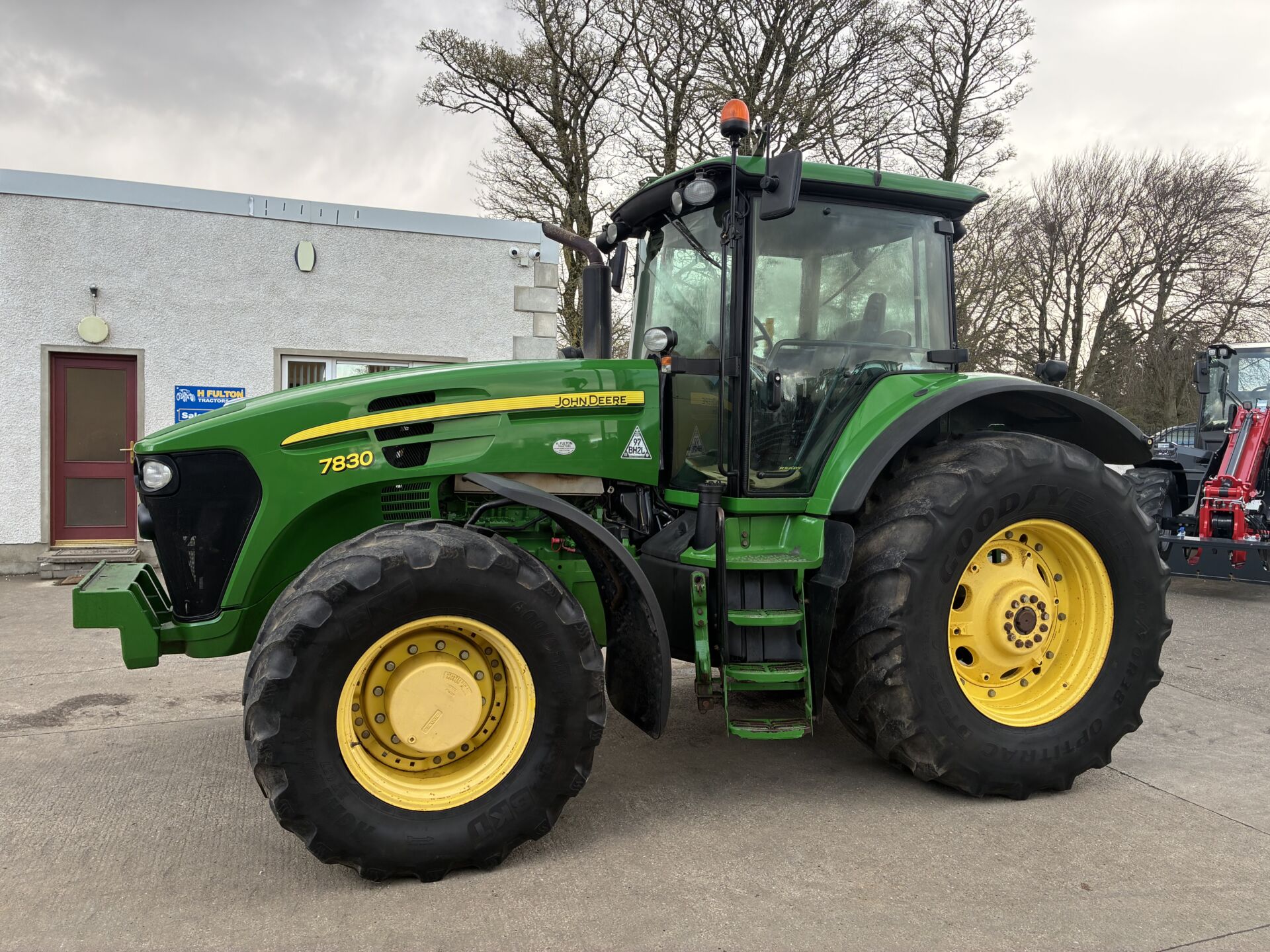 2008 JOHN DEERE 7830 WITH 7440HRS, 50KPH AUTO QUAD GEARBOX, 4 MANUAL SPOOLS, FRONT TLS SUSPENSION, BAR AXLE, TELESCOPIC HITCH, AIR SEAT, PASSENGER SEAT, AIR CON, AUTO TRAC READY ETC… 710/70/38 REAR & 600/65/28 FRONT TYRES. FULLY ORIGINAL TRACTOR.