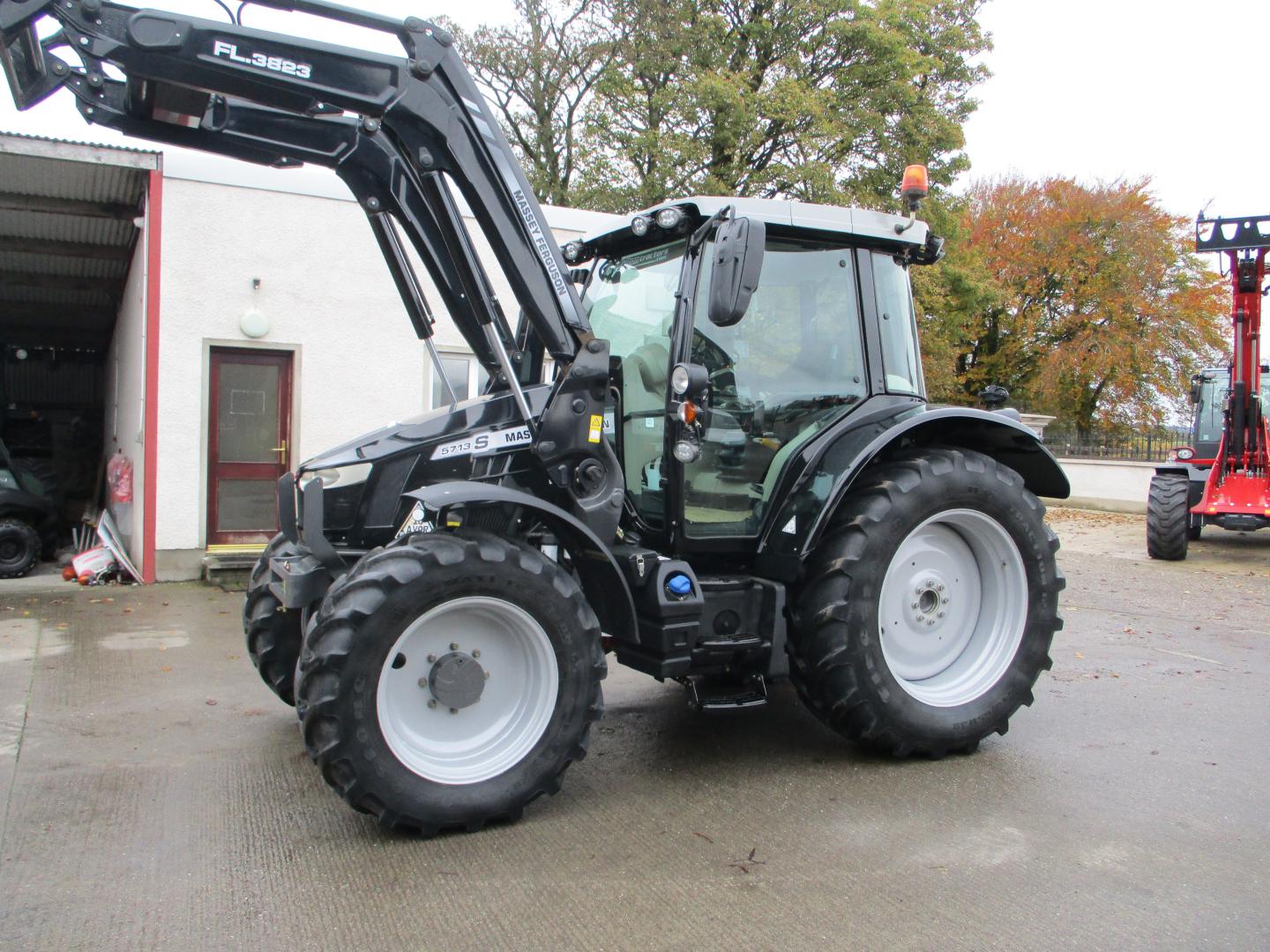 DIRECT FROM UK ARABLE FARM 2020 MASSEY FERGUSON 5713S WITH 1080HRS & FACTORY FITTED MASSEY FERGUSON FL.3828 LOADER. TRACTOR HAS A 40KPH DYNA-4 GEARBOX WITH AUTO DRIVE, LEFT HAND POWER CONTROL LEVER, AIR BRAKES, 4 SPOOLS, FRONT & CAB SUSPENSION, BIG PUMPS (BLUE BUTTON), SWIVELLING FRONT MUDGUARDS, TELESCOPIC HITCH, TWIN ANGLE MIRRORS, BIG LED LIGHTS PACKAGE, AIR SEAT, AIR CON, PASSENGER SEAT, BLUETOOTH RADIO ETC… FIRESTONE 540/65/38 REAR & 440/65/28 FRONT TYRES 90%.