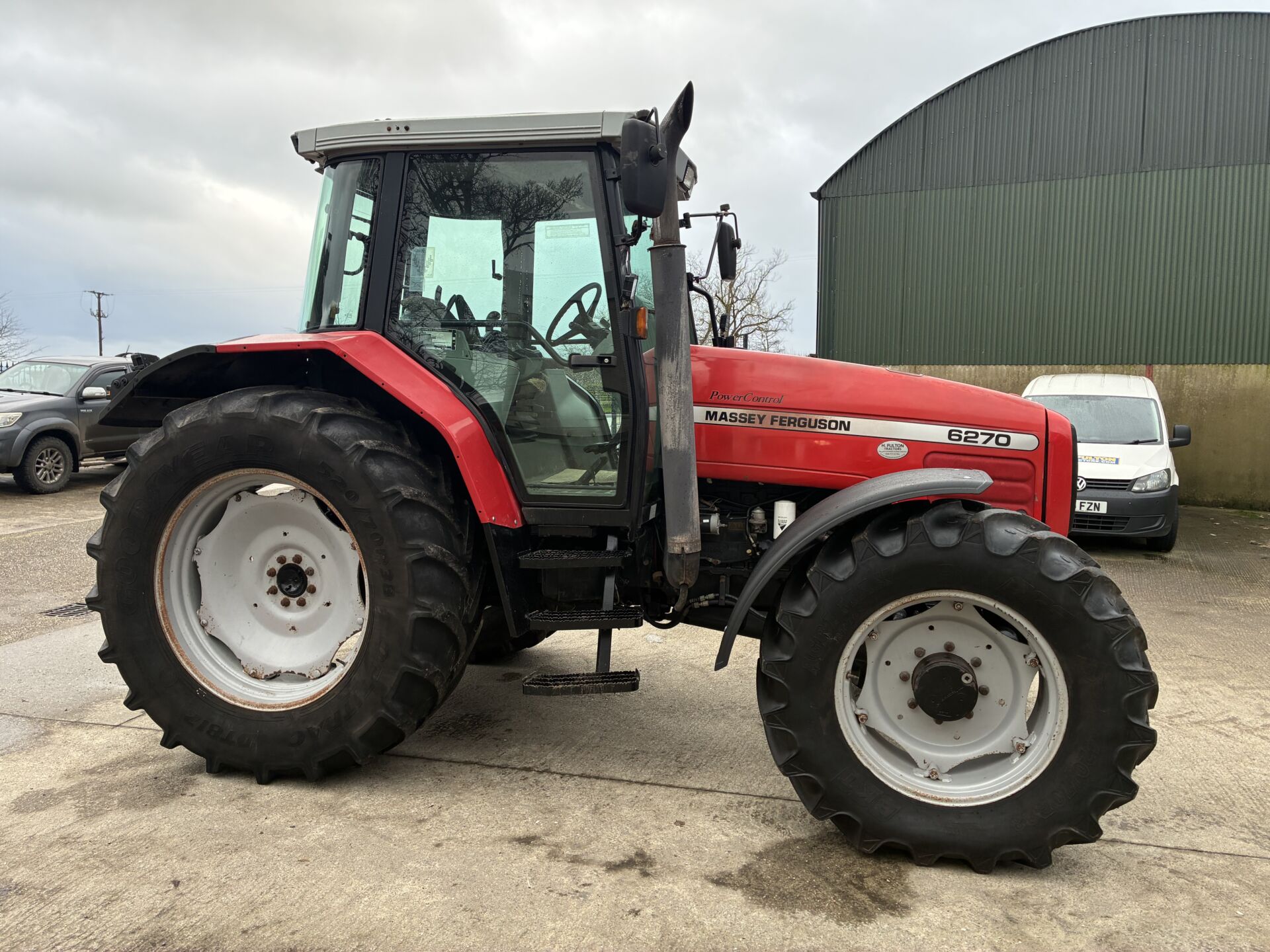 2001 MASSEY FERGUSON 6270 WITH 13,360HRS, 40KPH DYNASHIFT GEARBOX, 2 MANAUL SPOOLS, FRONT SUSPENSION, TELESCOPIC HITCH, AIR CON, PASSENGER SEAT, SUNROOF ETC… 520/70/38 REAR & 420/70/28 FRONT TYRES.