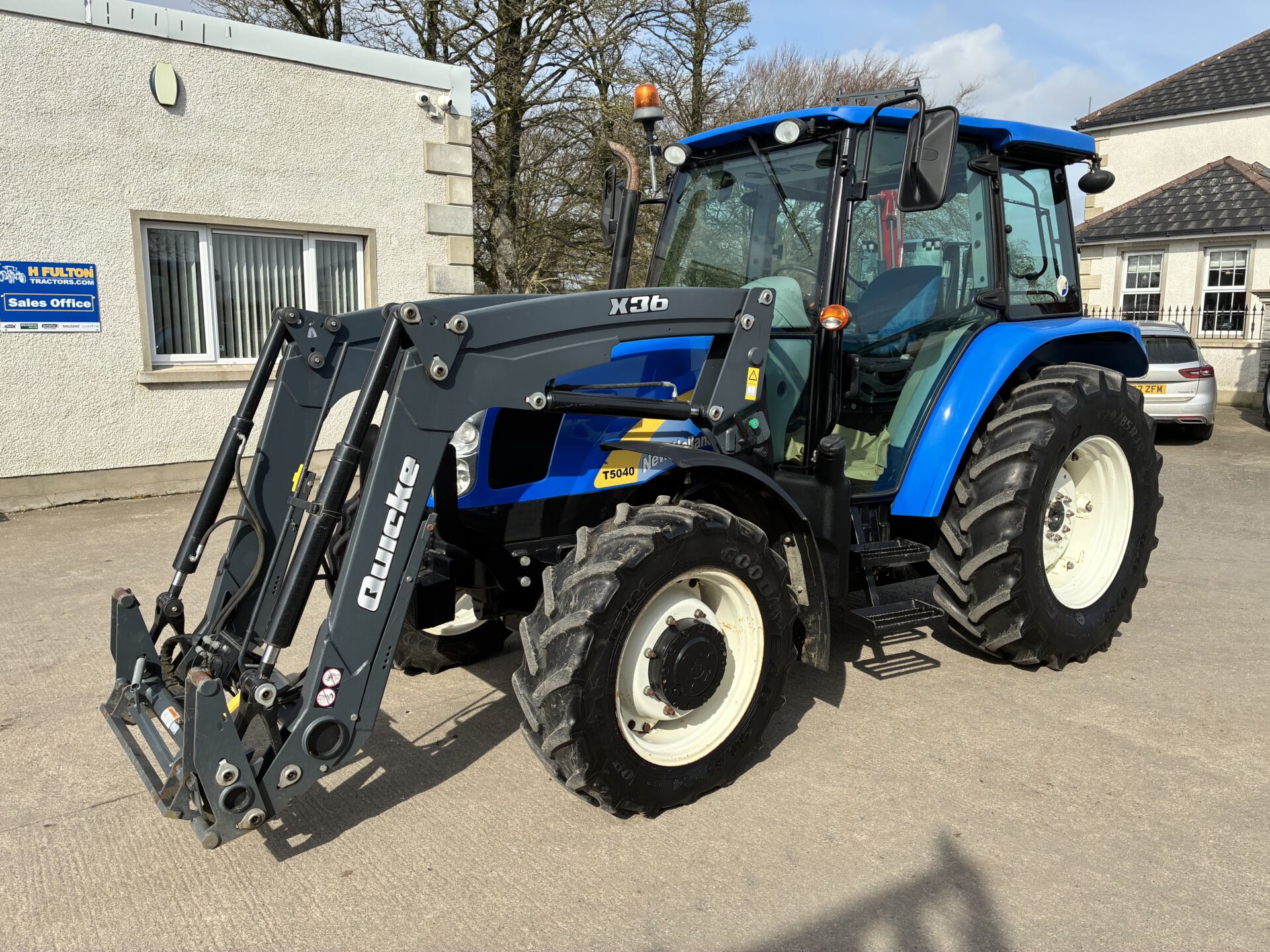 2011 NEW HOLLAND T5040 & QUICKE LOADER WITH ONLY 1640HRS, 40KPH DUEL COMMAND GEARBOX, 2 SPOOLS, AIR SEAT, BLUETOOTH RADIO ETC… ORIGINAL GOODYEAR TYRES.