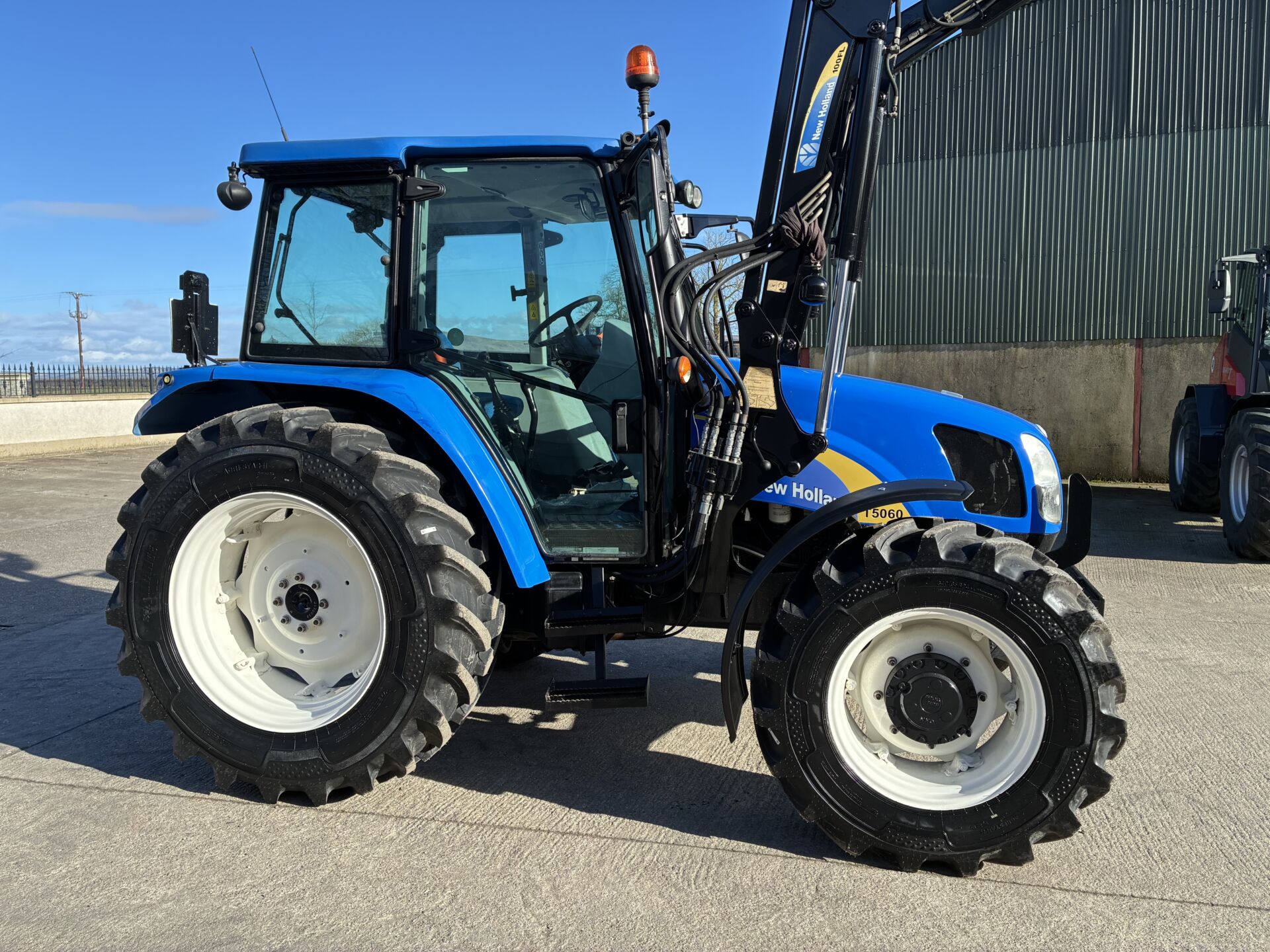 2012 NEW HOLLAND T5060 WITH 3760HRS & NEW HOLLAND 100FL FRONT LOADER. TRACTOR HAS 40KPH DUAL COMMAND GEARBOX, 2 MANAUL SPOOLS, MANUAL LIFT, AIR SEAT, SUNROOF, AIR CON ETC… NEW ALLIANCE 420/85/24 REAR & 340/85/24 FRONT TYRES.